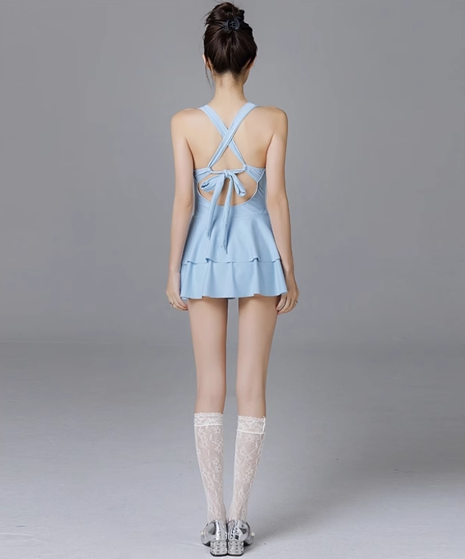 新品 水着 レディース★ミニスカート ワンピース スク水 水泳 スイムウエア★パッド付き★水遊びプール 温泉 サイズM L XL選べる★ブルー系
