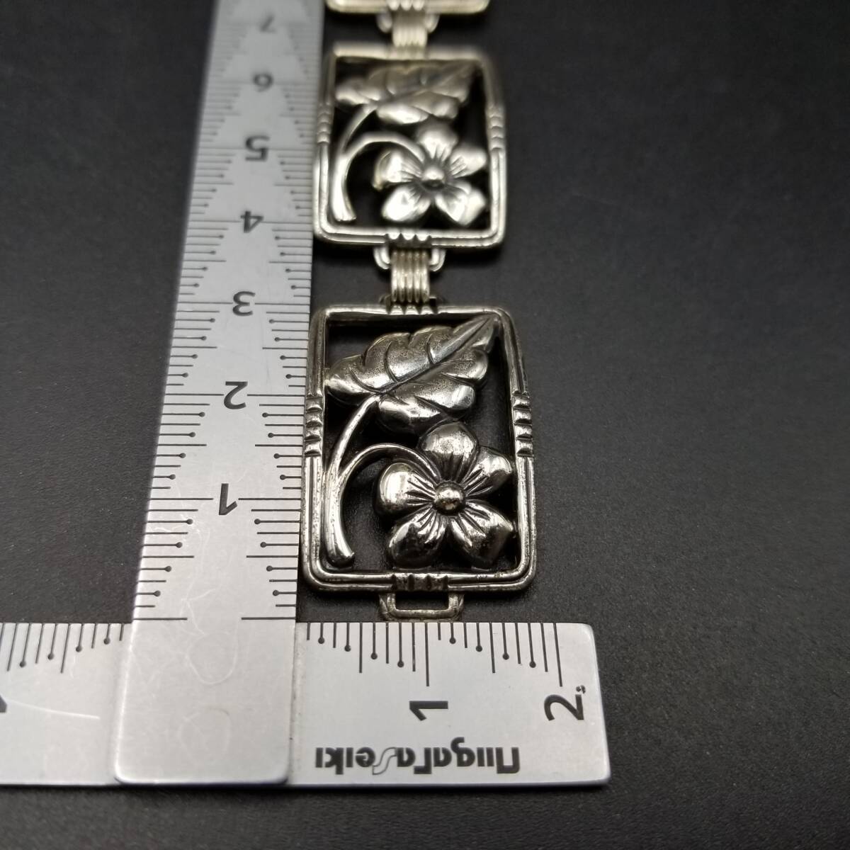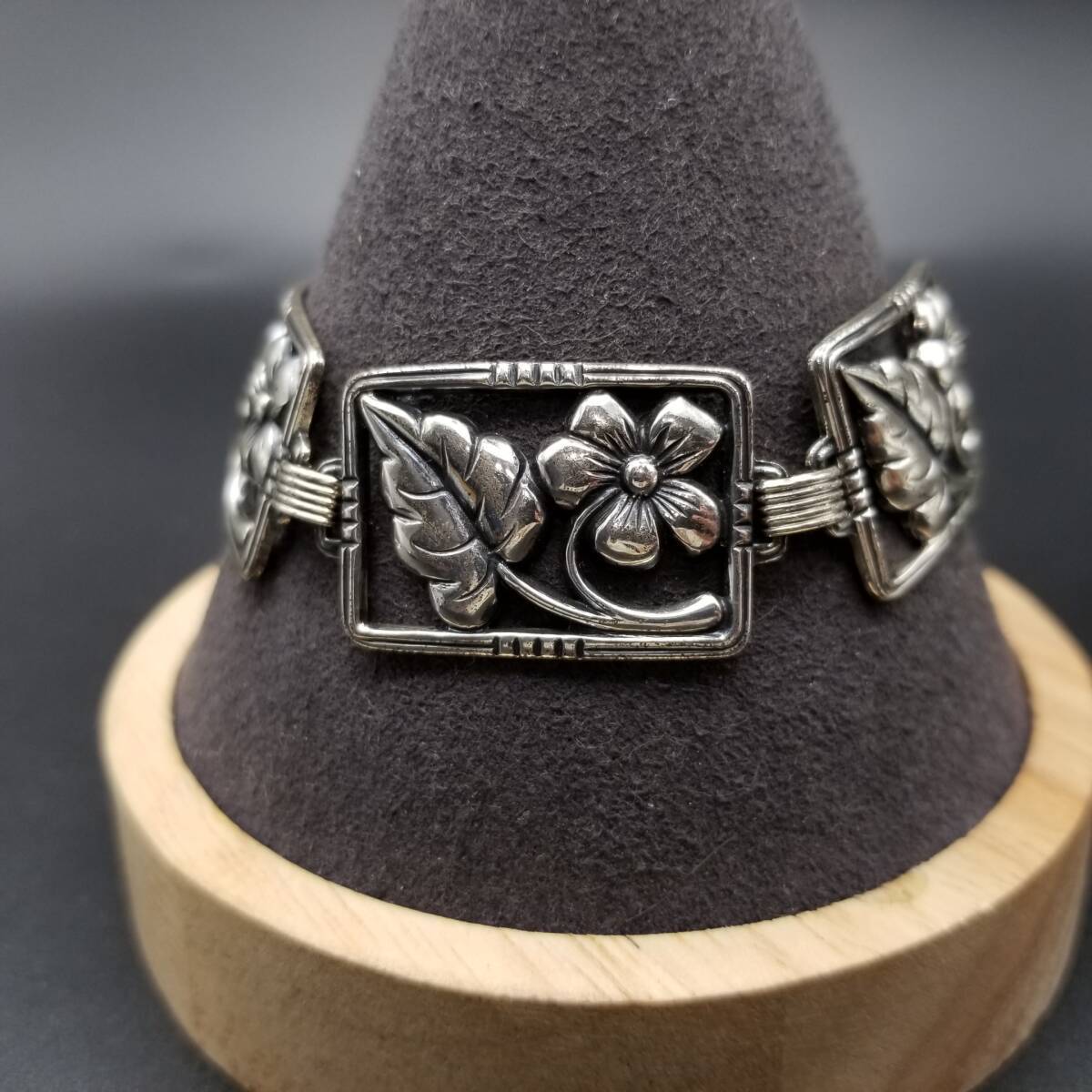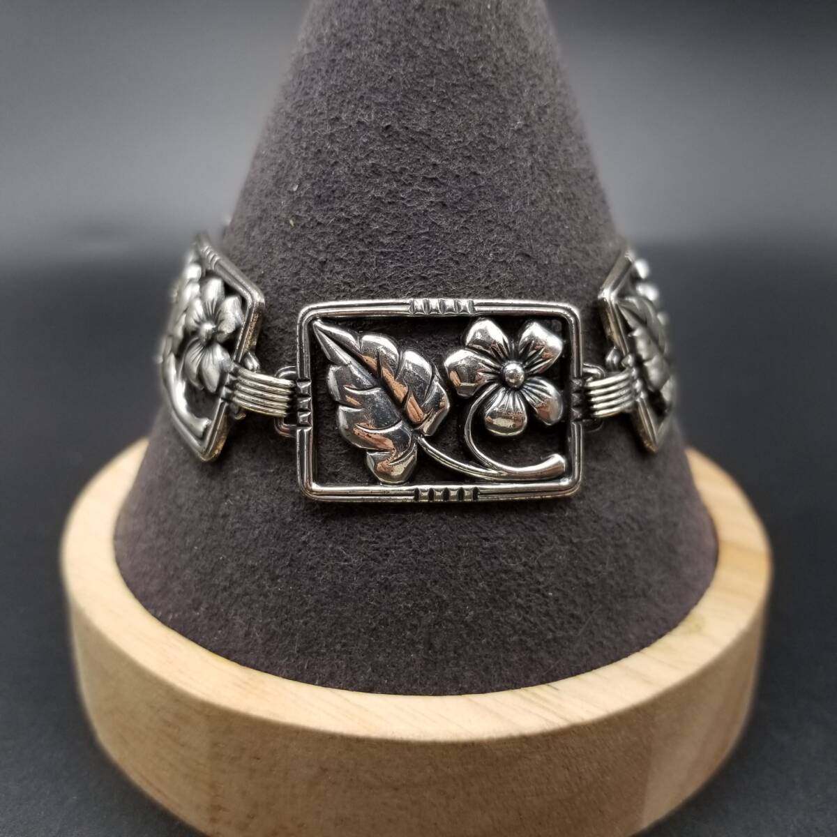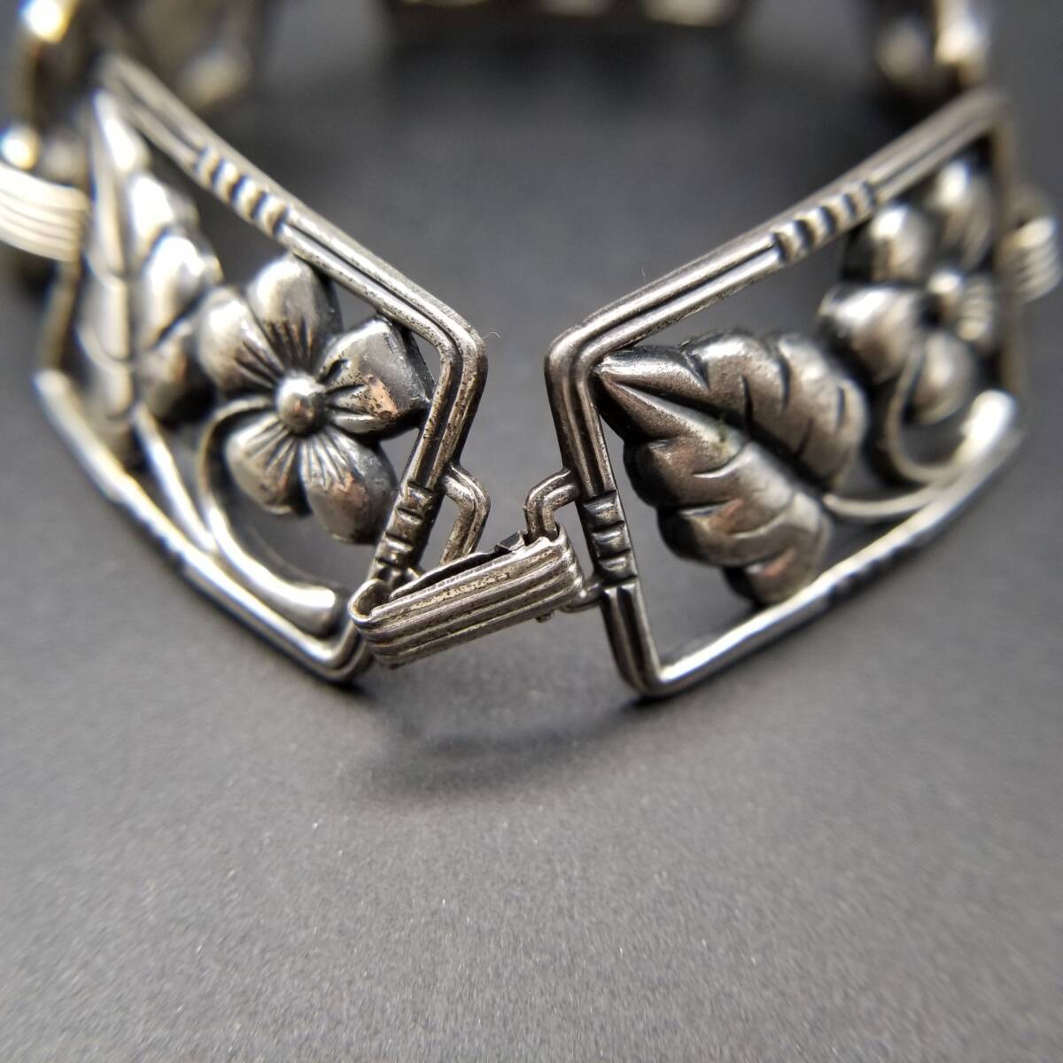 50's Danecraft社製 お花 フローラル パネルチェーン 925 シルバー ヴィンテージ ブレスレット 銀細工 レトロ 存在感 レディース Y21-Y