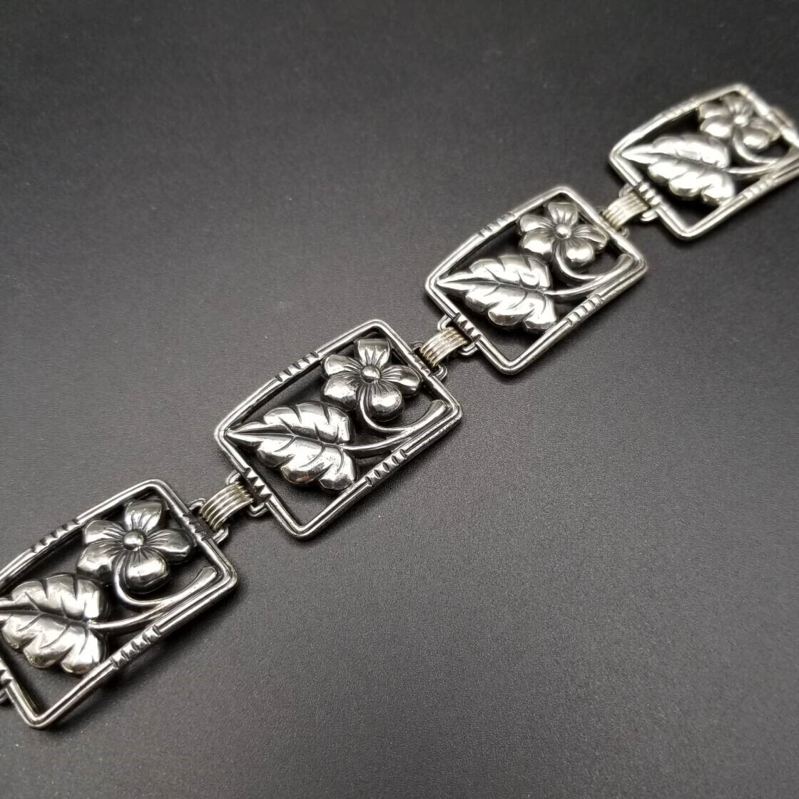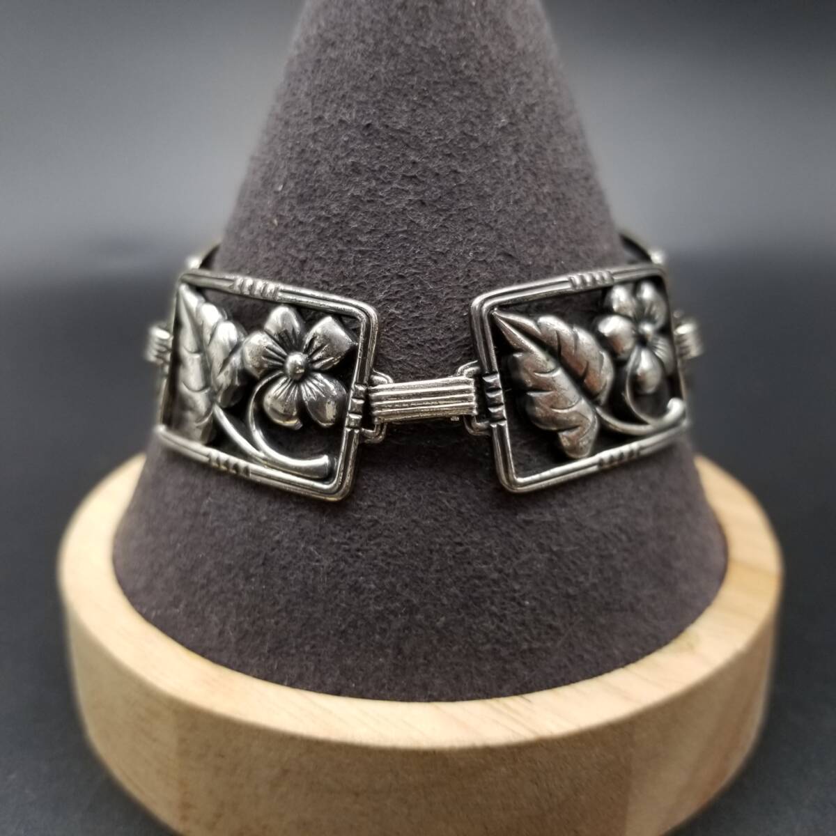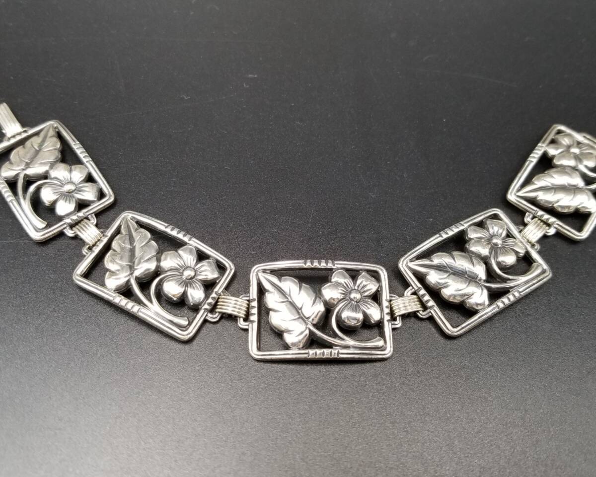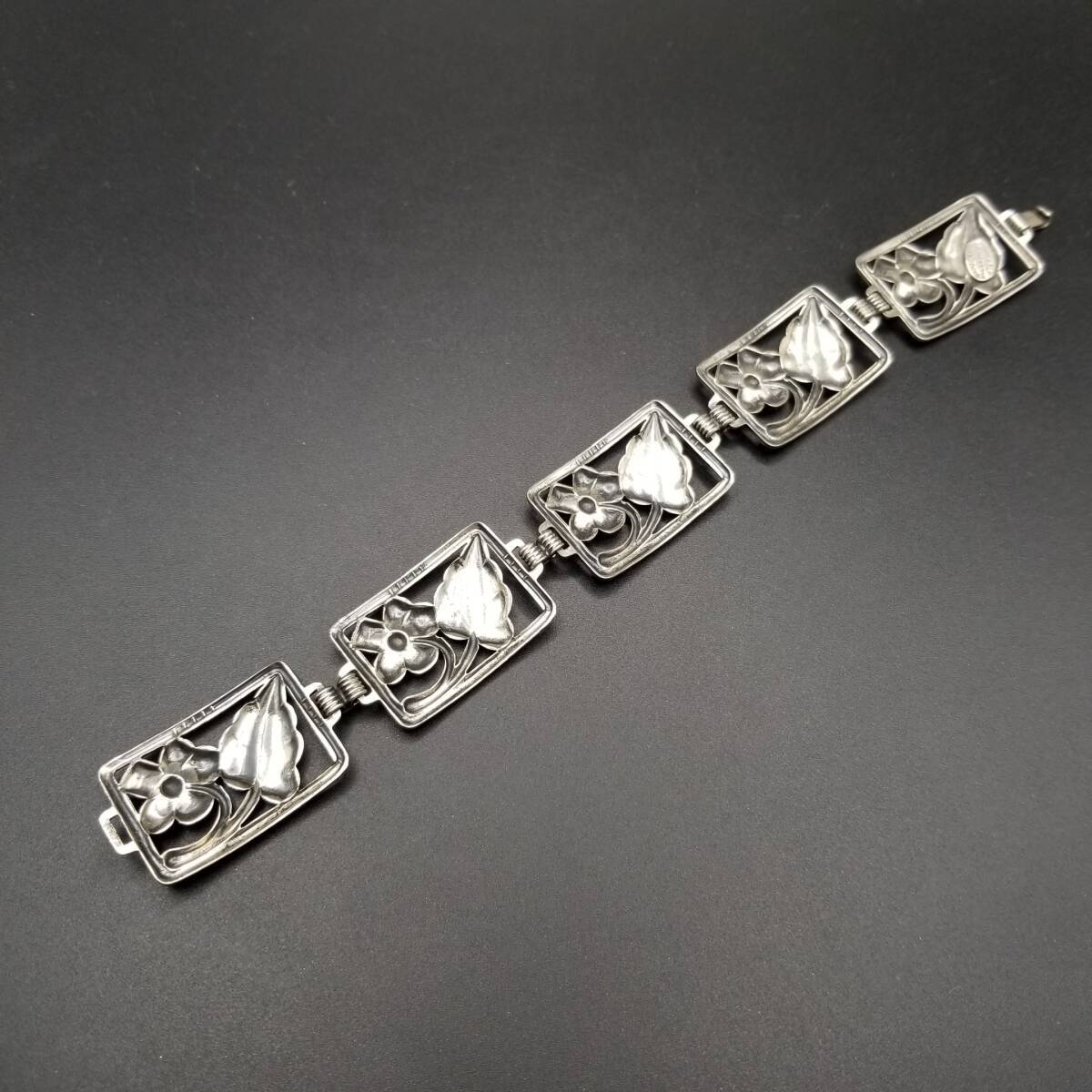 50's Danecraft社製 お花 フローラル パネルチェーン 925 シルバー ヴィンテージ ブレスレット 銀細工 レトロ 存在感 レディース Y21-Y