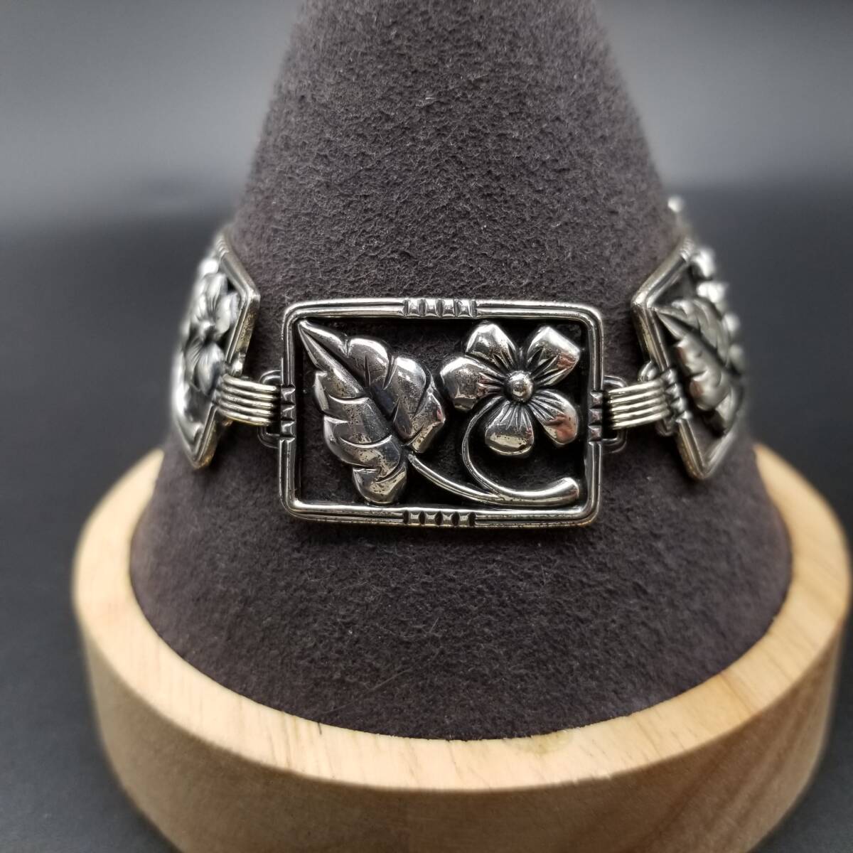 50's Danecraft社製 お花 フローラル パネルチェーン 925 シルバー ヴィンテージ フラワー ブレスレット 銀細工 レトロ 存在感 レディース Y21-Y
