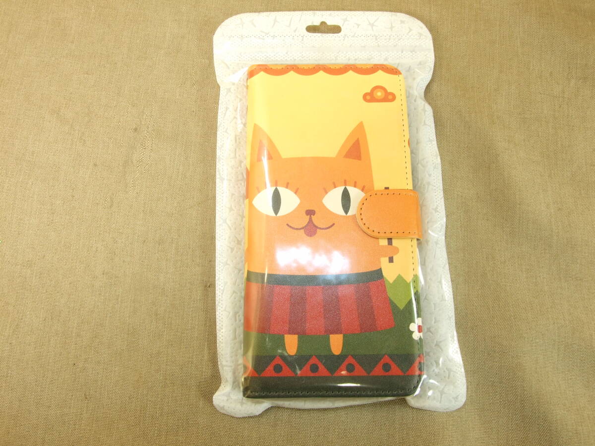 スマホホルダーアクオスウィッシュ4用ケース 手帳 スマ通 シャオミ スマホカバー カードポケット&鏡 付き 猫 ねこ イラスト 未開封品