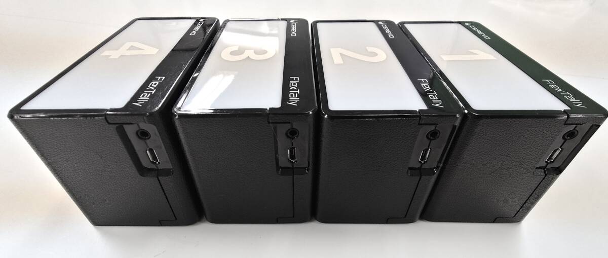 プロから個人まで、手軽に使える汎用無線タリーランプ・システム、FlexTallyを出品します。カメラに取り付ける4台のランプと、ランプの点灯をコントロールするための小型のステーションが1セットになったタリーランプシステムです。小規模なスタジオやライブ配信などでも使える価格帯ながら、無線接続と有線接続をサポート。ランプにはバッテリーを内蔵しており、面倒な配線を行なう必要がない機動性の高さを備えました。