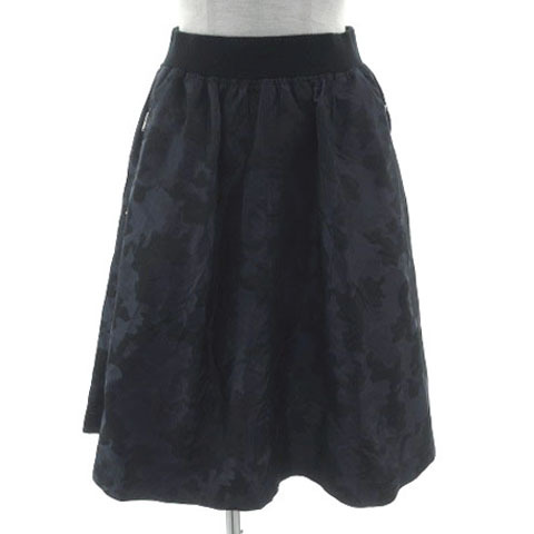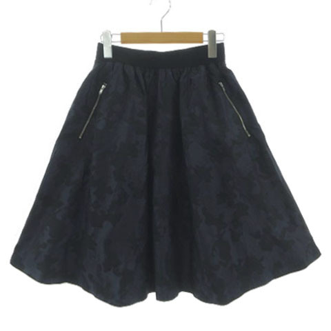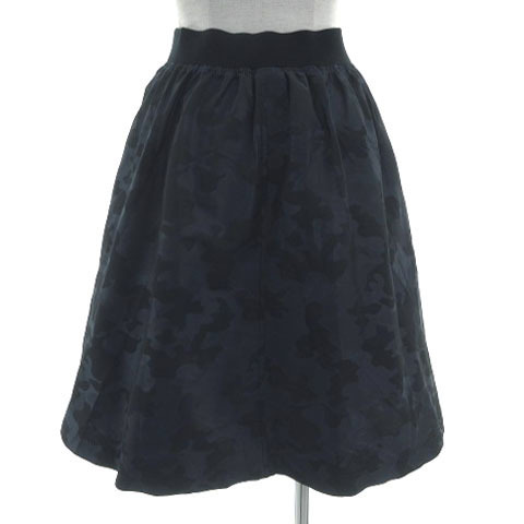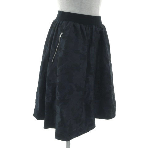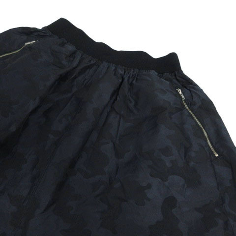 PCI パルレシフォンインターナショナル スカート フレア ひざ丈 ウエストゴム 日本製 カモフラ 迷彩 ナイロン ネイビー 紺 M