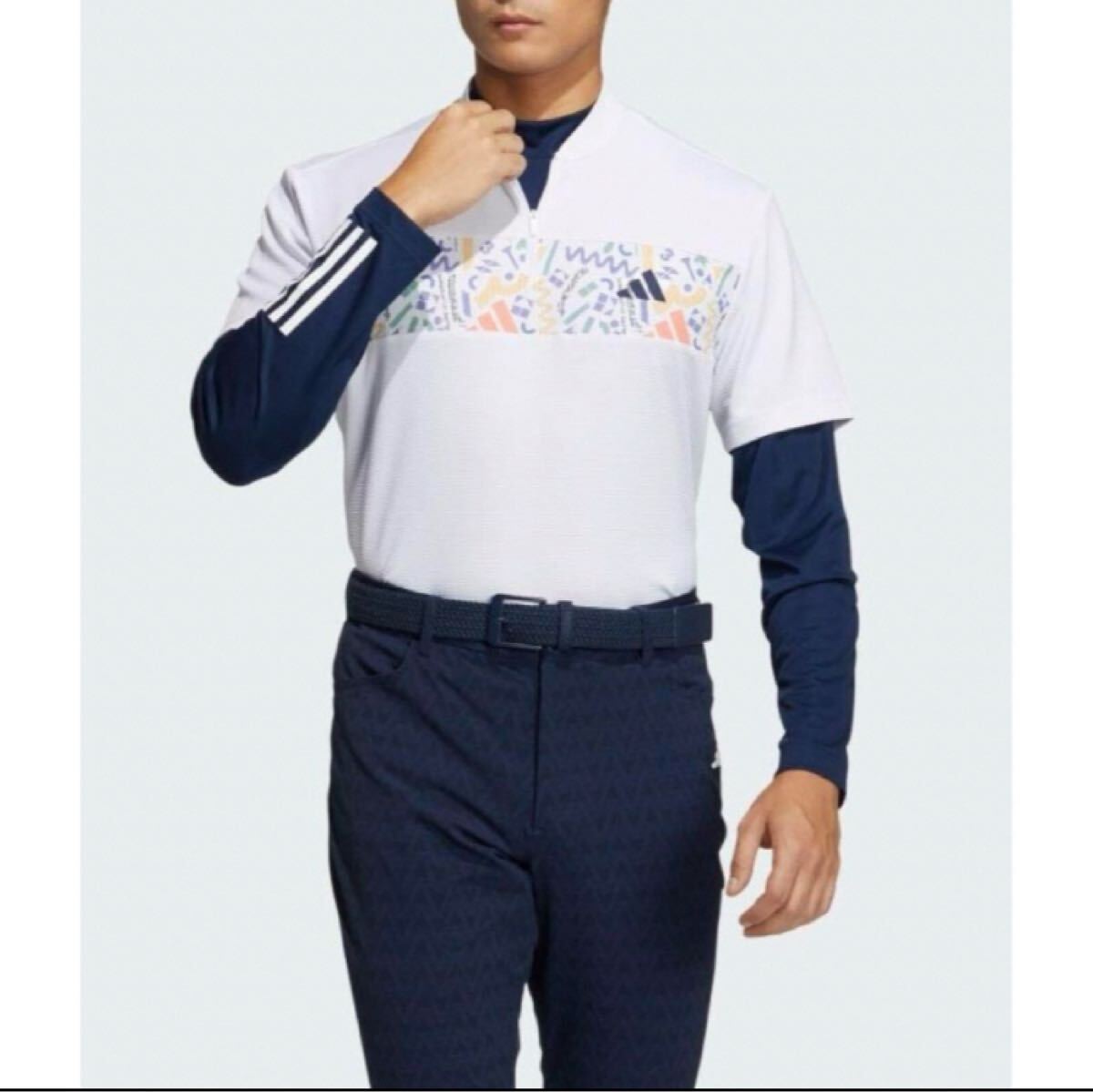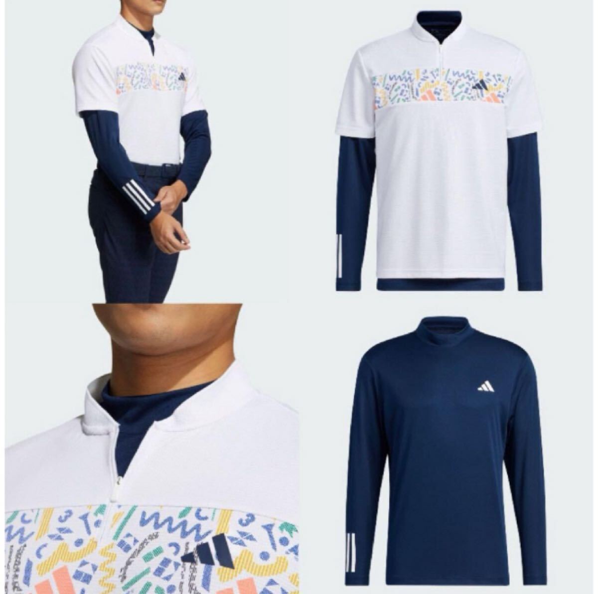 まだ寒い早朝のティーショットには、シャツとベースレイヤーを組み合わせた2-in-1スタイルで向かおう。どちらにも、吸湿性を発揮するAEROREADYを採用している。胸にグラフィック、ネックには着こなしをアレンジできるジップをあしらっている。