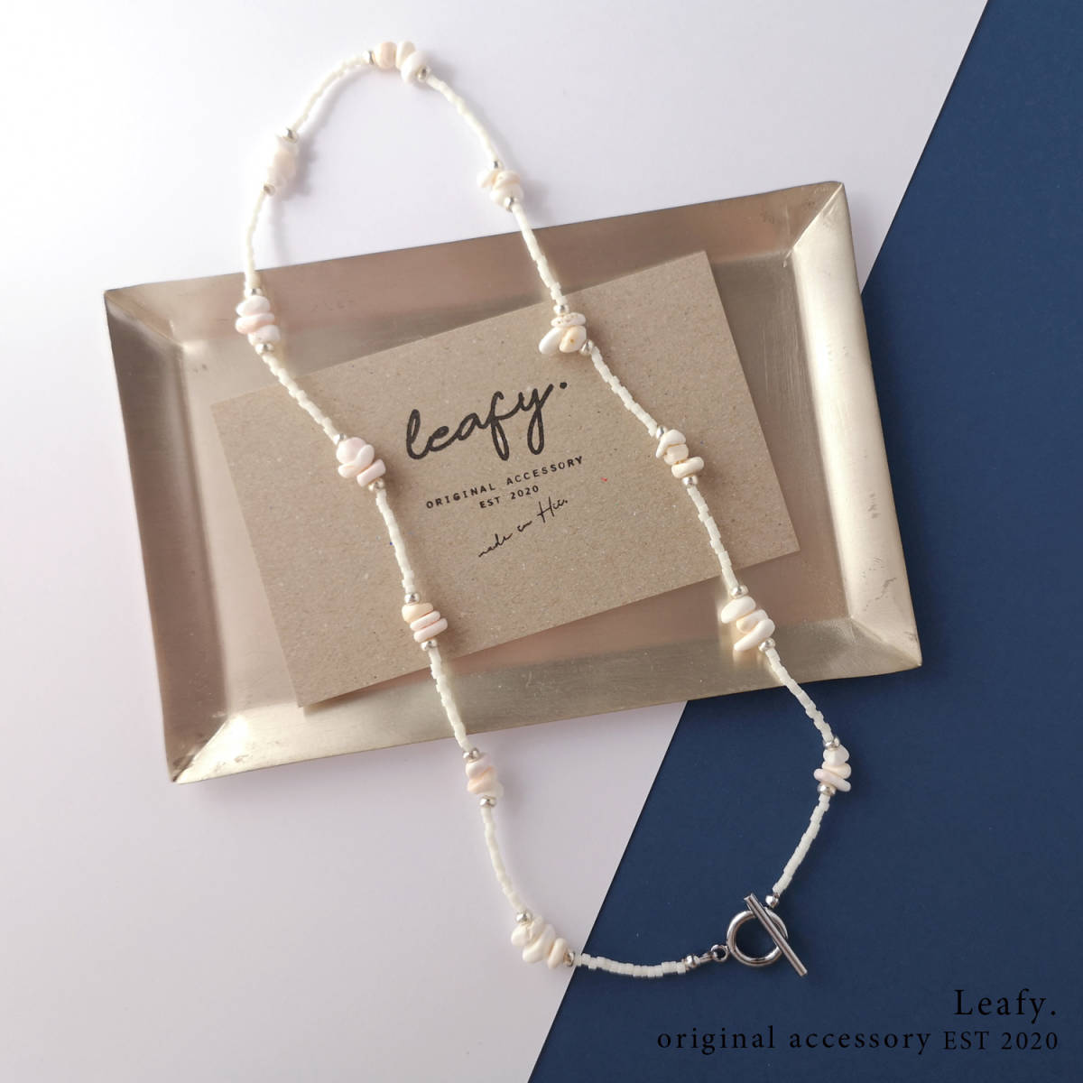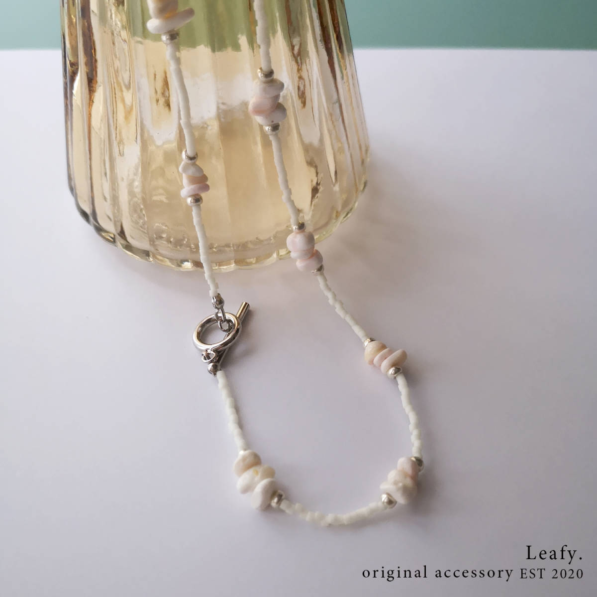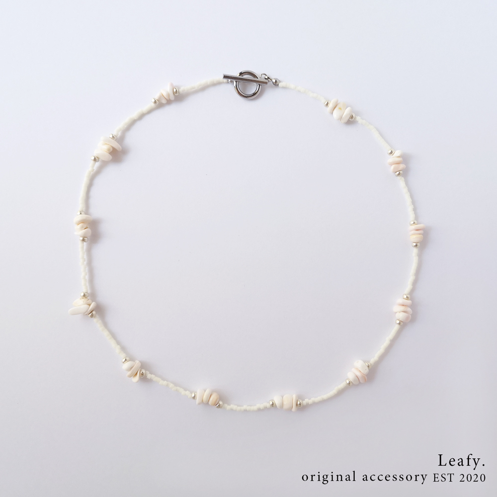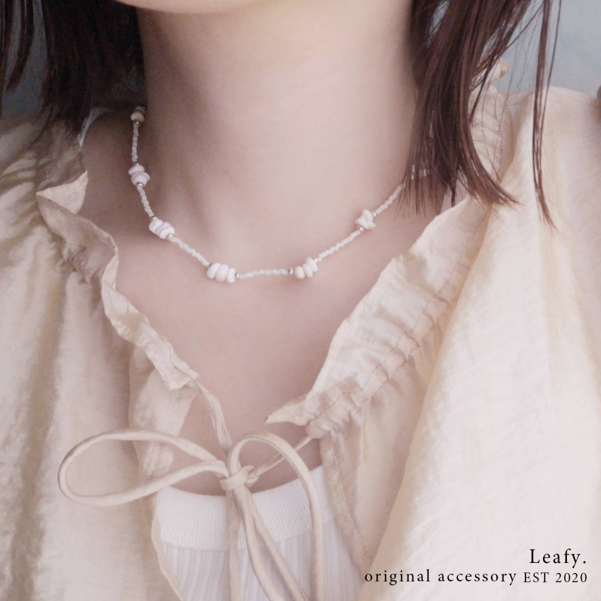 summer..さざれシェルのホワイトビーズネックレス ビーズアクセサリー マンテル