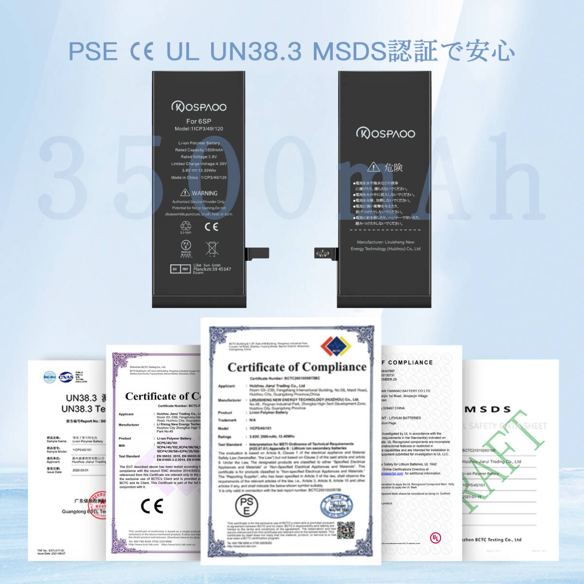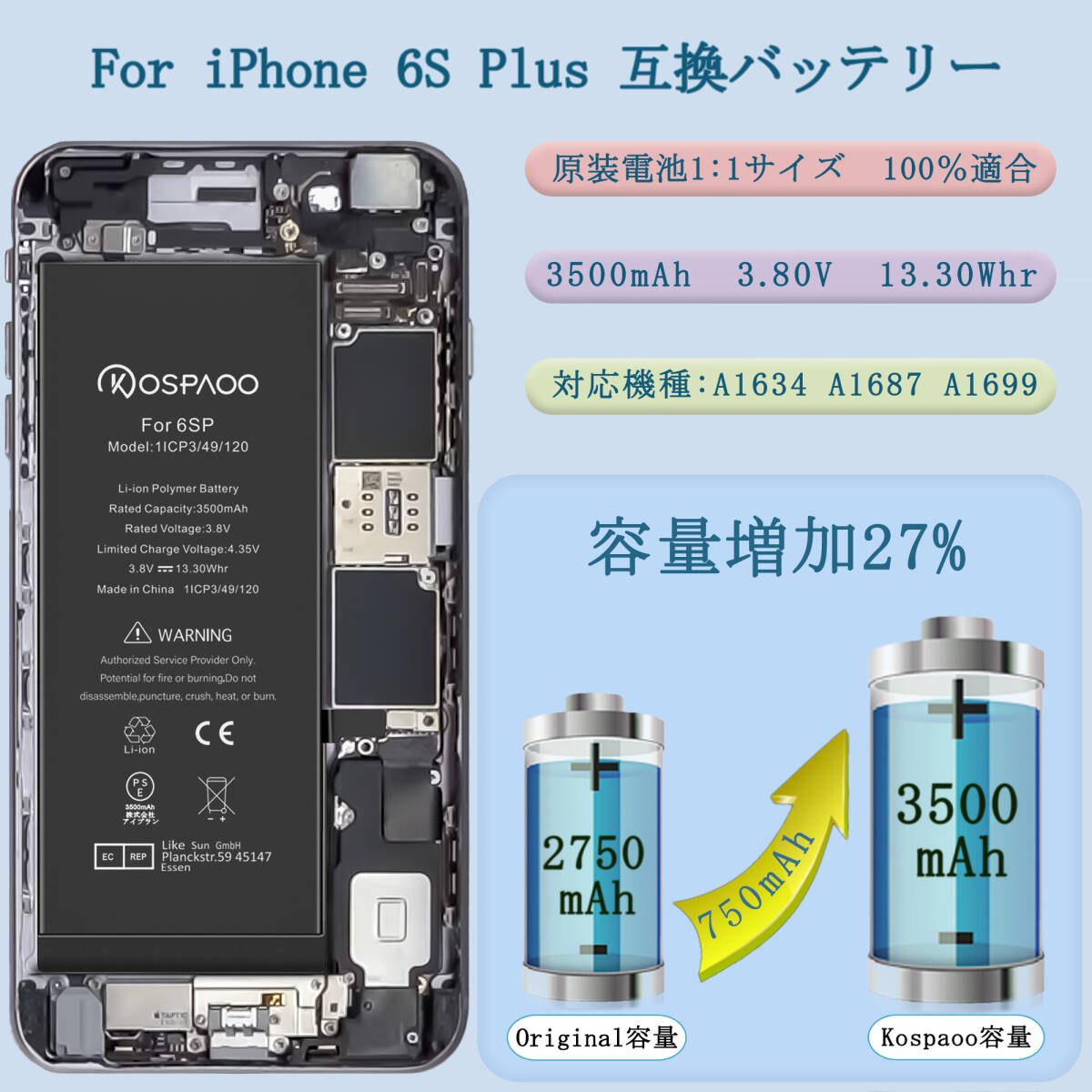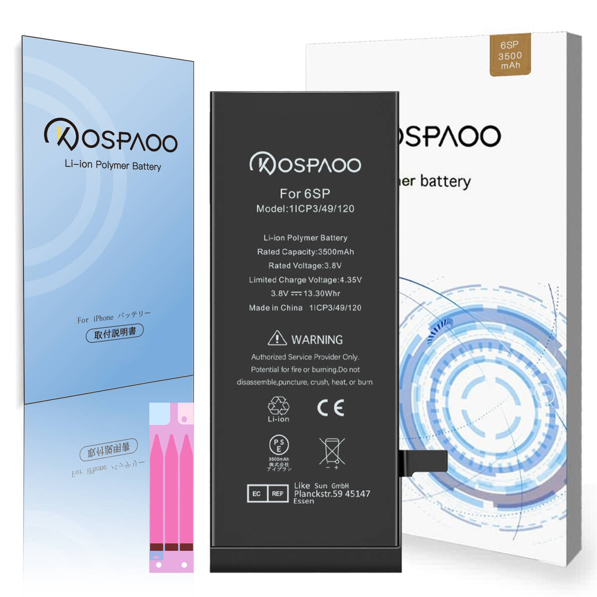 『大容量』For iPhone 6sPlus バッテリー 10個セット 交換ビデオ 3500mAh 増量 PSE準拠 Kospaoo/iPower 互換Li-ionBattery 交換修理