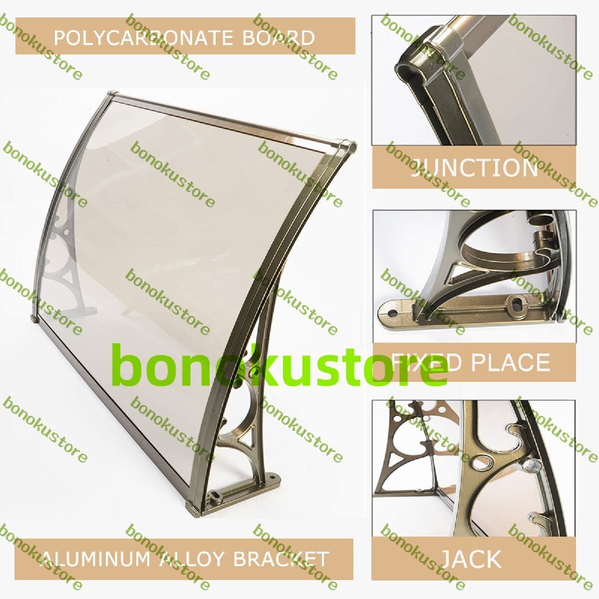 テラス屋根 ひさし雨よけ玄関屋根 住宅用サンシェード 庇 後付け シェルタート ランスペアレント 雨雪保護パティオ日除け 明確な80x100cm
