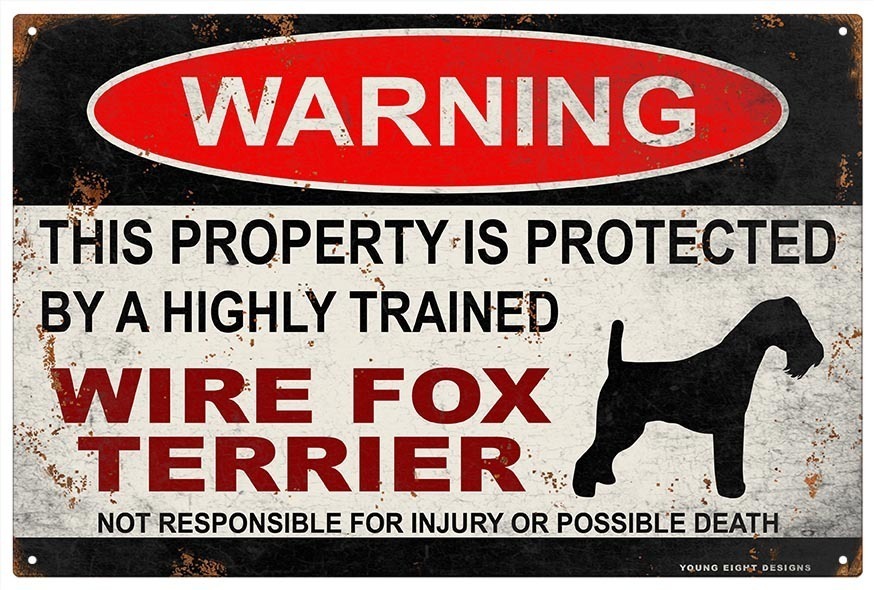 雑貨【Wire Fox Terrier/ワイアー・フォックス・テリア】WARNING/Dog/ドッグ/犬/警告/ヤードサイン/メタルプレート/ブリキ看板/サビ風-99