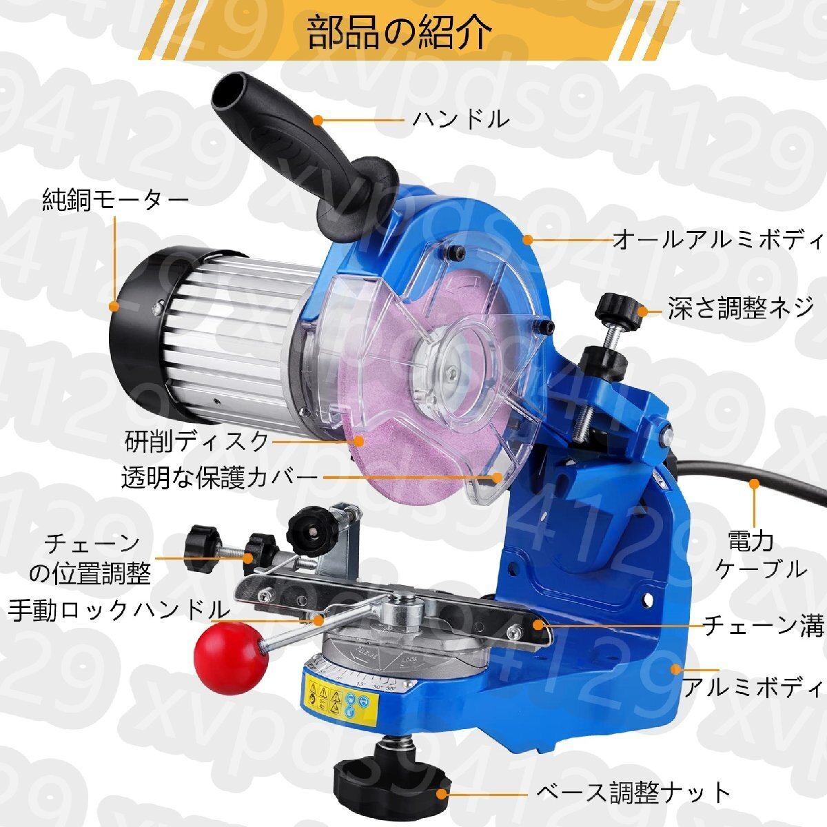 電気チェーン研削盤 チェーンソーグラインダー 電気研削工具 電気チェーンソーシャープナー 回転速度3000(r/min)チェーン鋸挽き110V