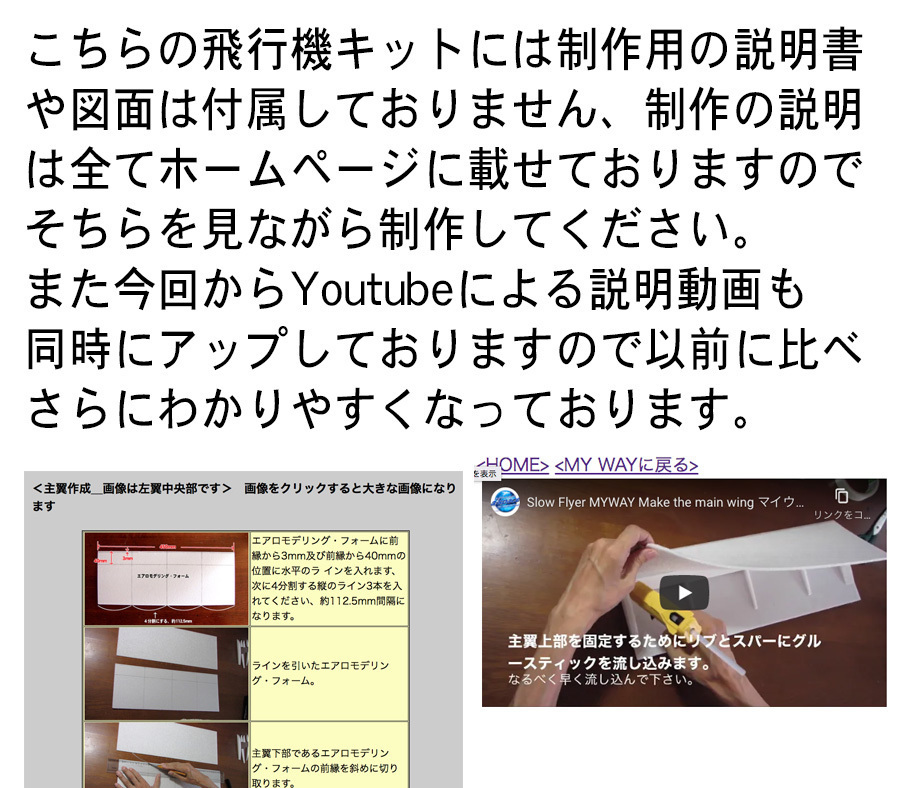 またキットの中には製作用の説明書および図面は付属しておりません、制作に関しては全てホームページに載せてありますのでそちらを参照願います、 今回から Youtubeによる制作動画もアップしておりますので以前に比べさらにわかりやすくなっております。