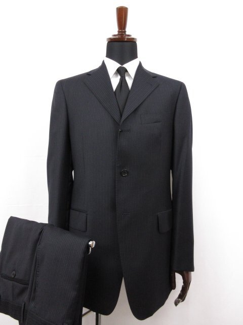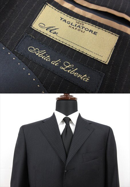 未使用【TAGLIATORE NAPOLI 1939 タリアトーレ】 SUPER100's 3ボタン スーツ (メンズ) 46 ネイビー系 ストライプ 伊製 TA700/18◯27SLJ0643
