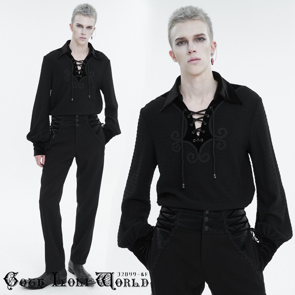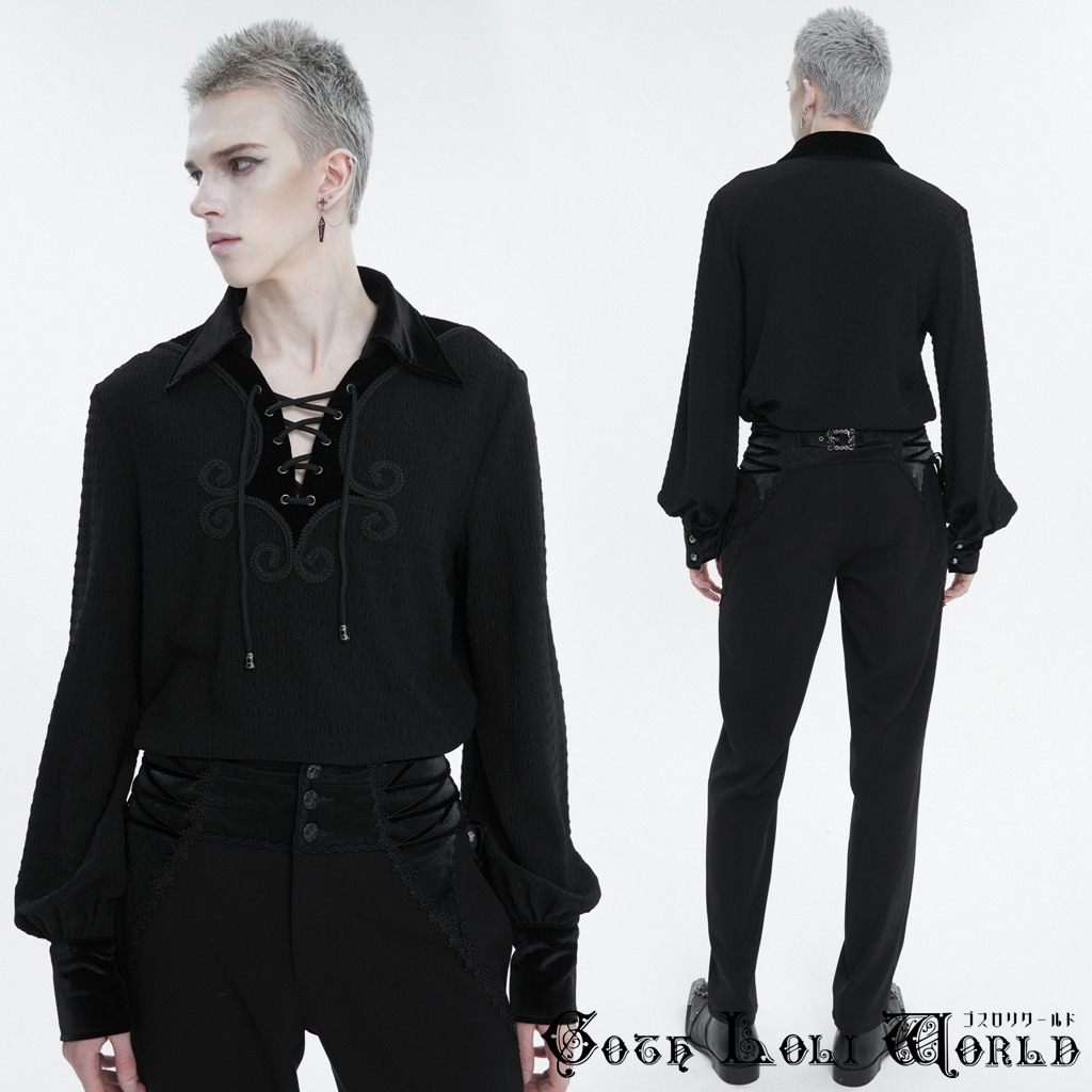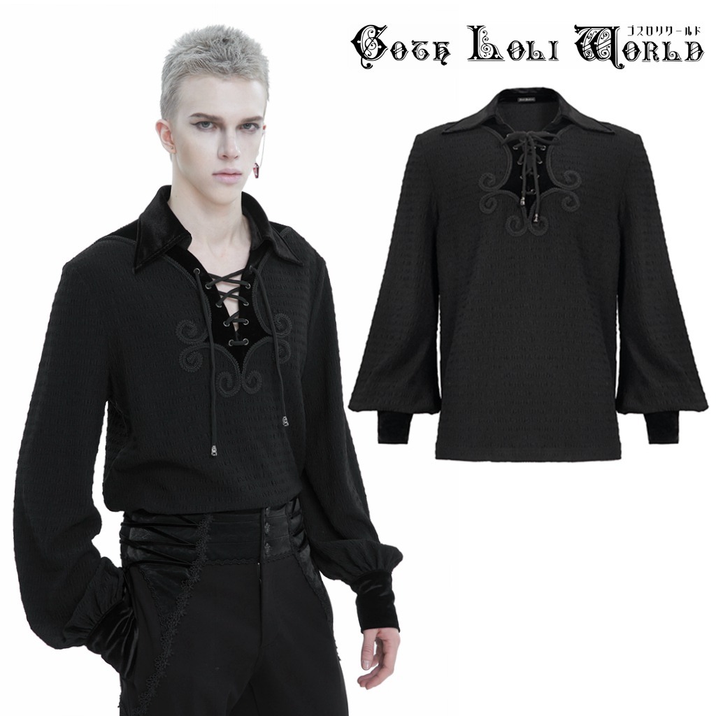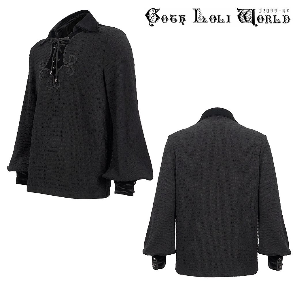SHT086-L ゴシックファッション 海賊風ボリューム袖ジャガード カットソー ゴスロリワールド ゴシック パンク ロック ビジュアル系 V系