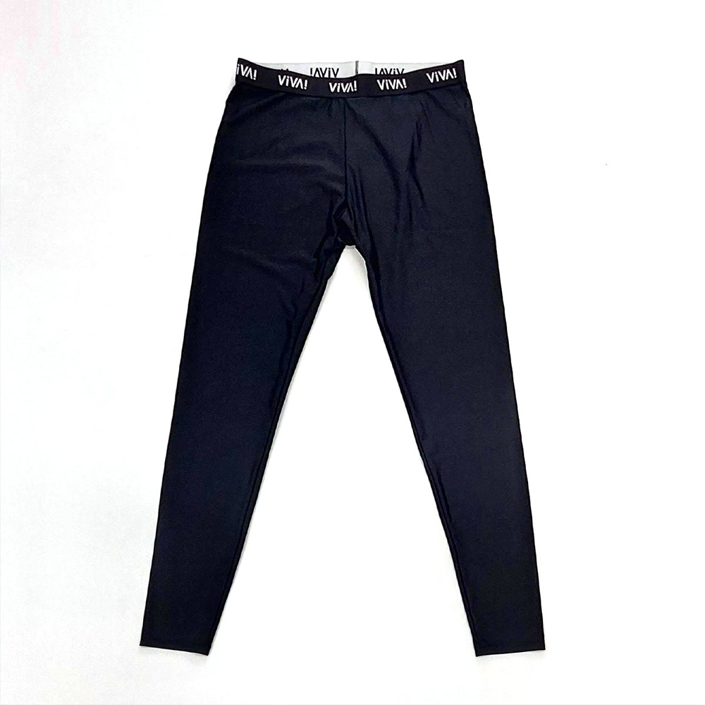 ウエストゴムにVIVAロゴが印字されたストレッチ素材のレギンス 海水浴・プール・屋外スポーツ時の日焼け防止 色:ブラック リサイクル:環境に配慮したペットボトルリサイクル素材を使用 機能性生地:ポリエステル 83% ポリウレタン 17% 素材:やわらかい風合いと肌触りを実現し、耐久性とストレッチ性が高い素材 UV PROTECTION:UPF50+(UV率95%以上) サイズ(目安):M 身長(120-130cm)