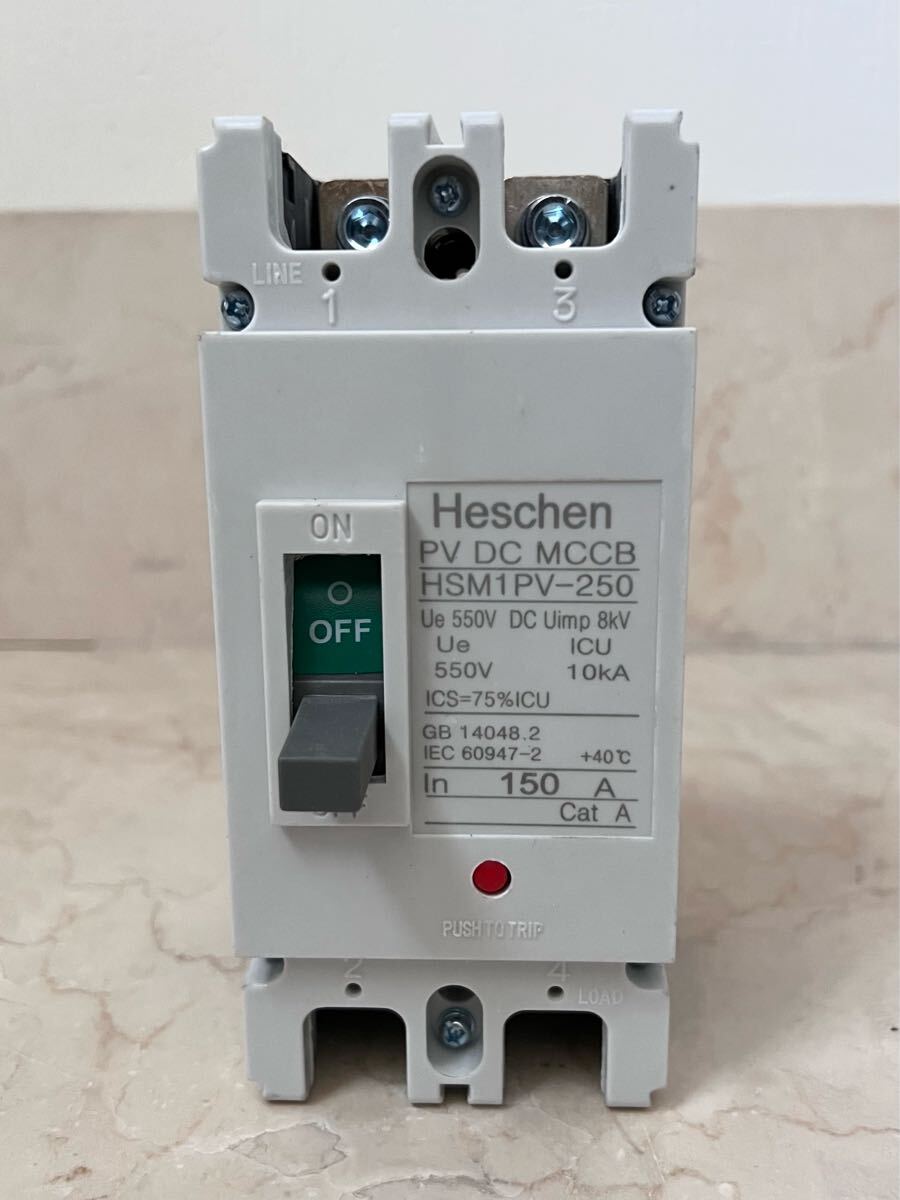 Heschen DC成形ケースサーキットブレーカー MCCB、HSM1PV-250、2極、DC550V 150A、太陽光発電遮断器、太陽光発電システムソーラーパネルグリッドシステム用
