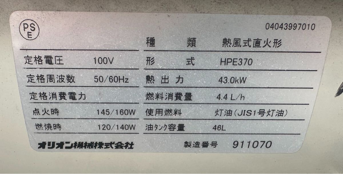 定格消費電力:点火時150/160W 燃焼時120/135W