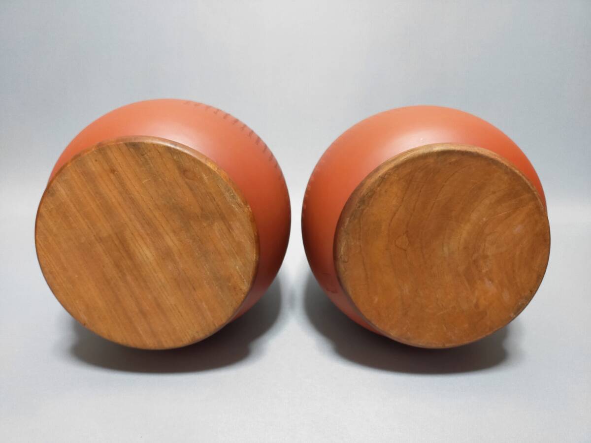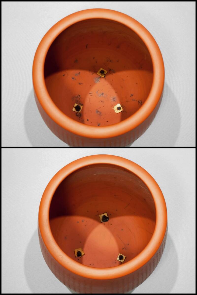 名工 山田陶山氏の火鉢一対です。状態は、目立つ割れやカケ無く良品です。木台の金具・