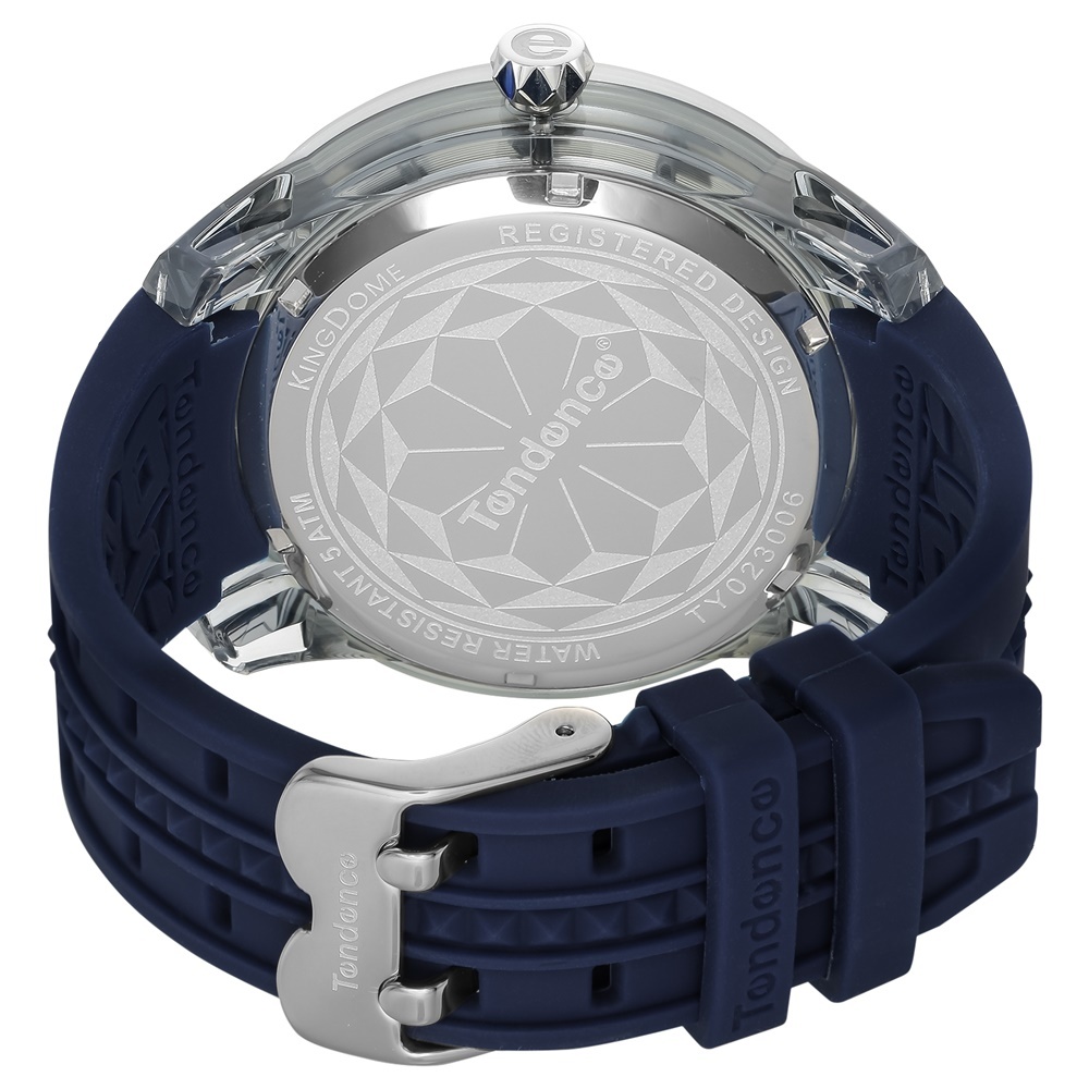 テンデンス 腕時計 メンズ レディース キングドーム ブラック ネイビー インパクト ドーム型ガラス 回転ダイヤル 3Dインデックス オーバーサイズ シリコンベルト 10代 20代 30代 おしゃれ ファッション 個性的 贈り物 サプライズプレゼント2007年、時計作りの最高峰のスイスで誕生した「Tendence」。「人生を豊かにする」という意味でもあるこのスローガンは、テンデンスを愛する全ての人が自由に自己表現をし、それを楽しむことへの敬意を込めたメッセージでもあります。------------------------------------------------------------------KINGDOME(キングドーム)ドイツの国会議事堂の頂上にある、ガラス張りのドーム屋根にインスパイアされたシリーズ。そのドーム屋根の構造を厚みのあるミネラルガラスで再現。また、回転式のダイヤルでドーム内部のスロープも再現しています。テンデンスの特徴でもある3Dインデックスも、ドームの形状に沿うように新しくデザインされています。※こちらの商品は時間合わせをせず、入荷したままの状態で発送しております。予めご了承ください。■ブランド:TENDENCE(テンデンス)■クオーツ(電池式)■機能:回転式ダイヤル■防水性:5気圧防水■サイズ(約):時計の幅:50mm■付属品:ブランド専用BOX※説明書兼保証書 (日本語あり)■保証期間:1年間TY023006-NV