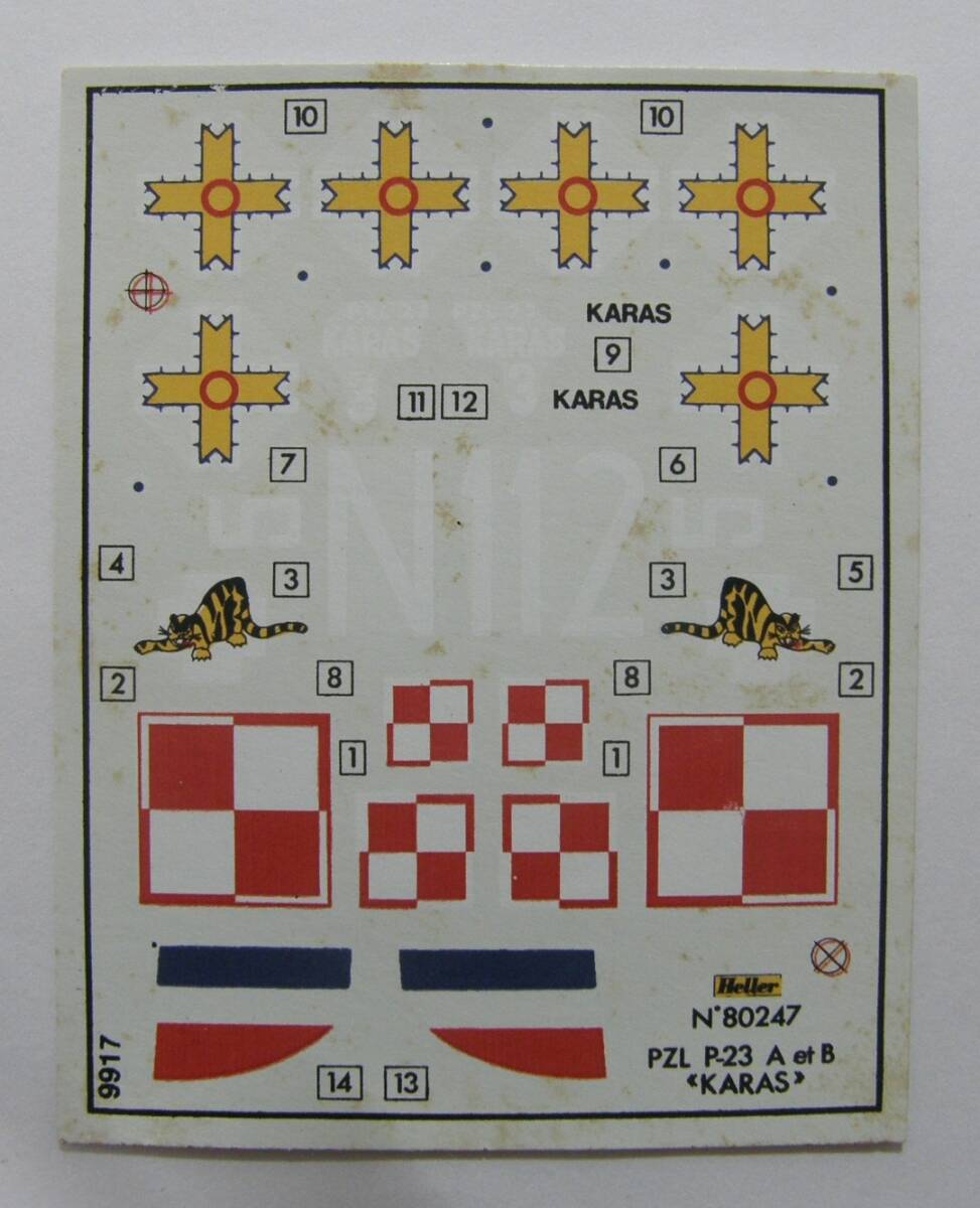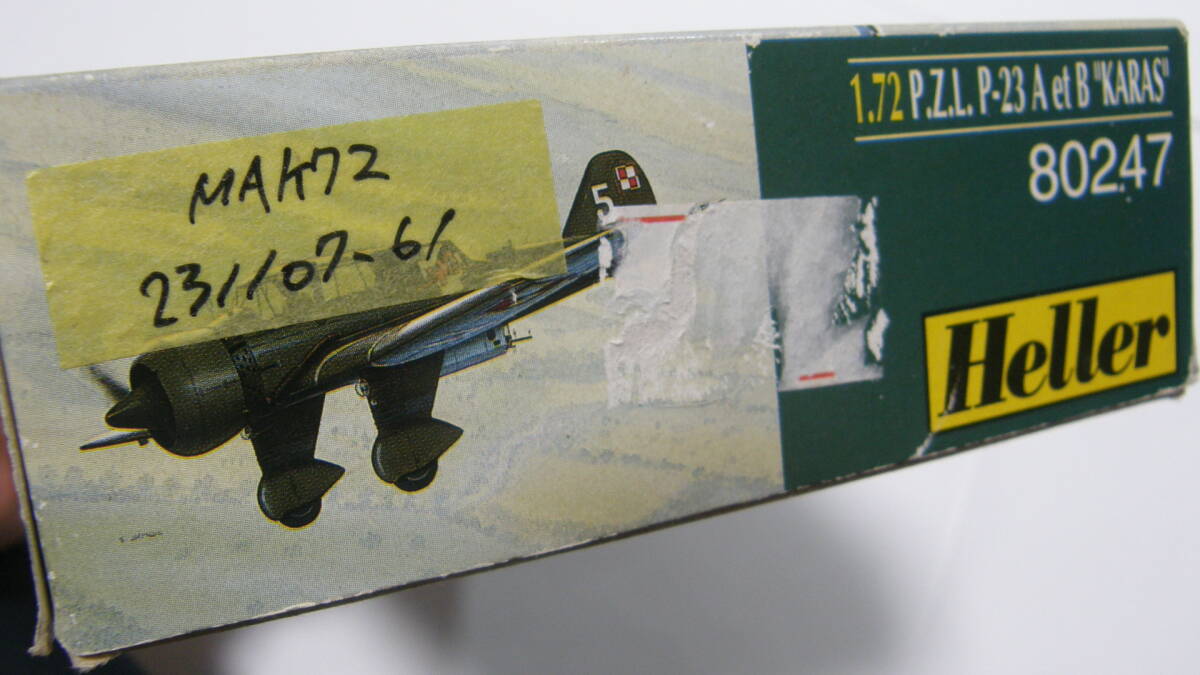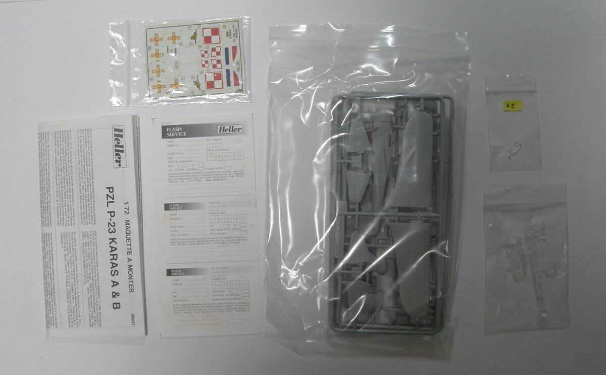 【商品説明】 ・P.Z.L. P-23 A and B "カラス"/P.Z.L. P-23 A et B "KARAS"(1/72スケール 80247) ・ブランド:Heller エレール ・発売日:1993年 ・「Heller エレール」製「PZL.23A・B カラシュ」の1/72スケールキットです。 1993年に販売されたもので、初版は1979年に「Heller エレール」社から販売されました。 その後、2025年までの間にデカールやパーツの差し替えなどにより「PZL.23A カラシュ」,「PZL.23B カラシュ」の2機種が合計11種類のパッケージで販売されています。全て、キットの金型は「Heller エレール」社のものをベースとしており、初版以降の販売元は「Heller」社,「Smr」社,「SK Model」社,「MisterCraft」社,「Martola」社,「BIGMODEL」社の合計6社にわたります(2025/4/10現在)。 ・パーツのモールドは繊細な凸彫りです。 全金属製でごつい固定脚に角ばったキャノピーと特徴的な本機のフォルムを的確に捉え、少ないパーツで作りやすくまとめたキットです。コクピットや後席銃座の側壁部、胴体の内側には、フレームの一部や機器類などがモールドされており、スケール以上のディティール感であり、初版が1979年の金型キットとはとても思えない充分な出来栄えだと思います。エンジンが換装され、垂直尾翼を増設、主翼基部前縁にフェアリングが追加された「B型」と改装前の「A型」のコンバーチブルキットになっています。 ・デカールはルーマニア空軍とポーランド空軍の2機種がセットされています。 <デカール> ・ルーマニア空軍 「3」 1942年 東部戦線 ・ポーランド空軍 55 Samodzielna Esk. Bombowa 「5 112N」 1939年9月 【商品状態】 ・外箱の表面に擦れと汚れ、凹みが見受けられます。また、箱の表面と側部に値札の剥がし跡があります。 | |||||||||||||