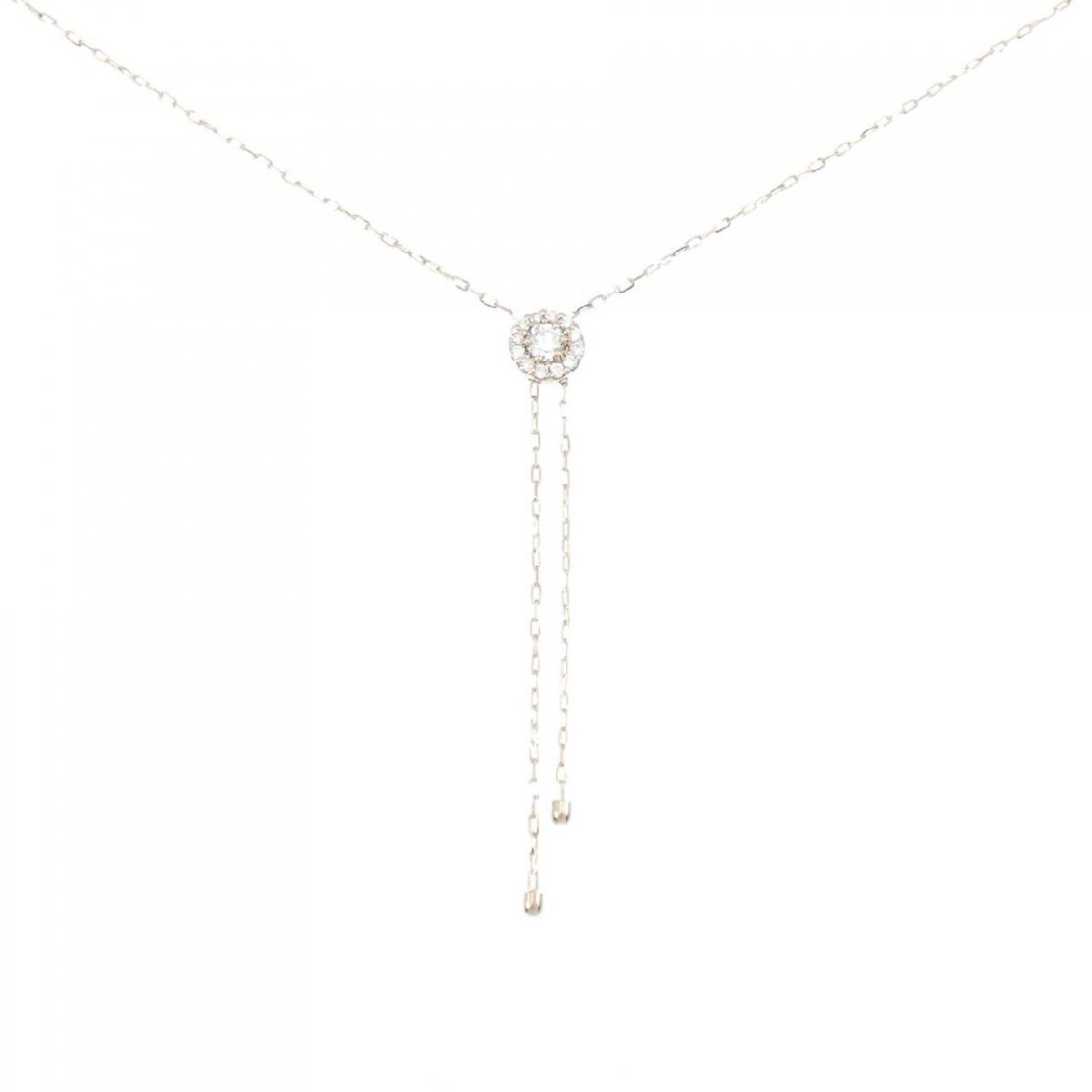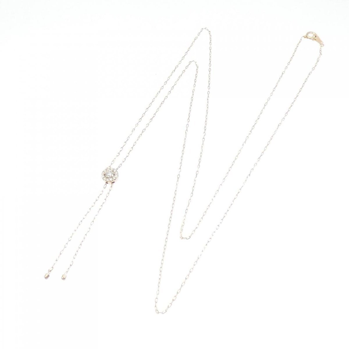 細かく輝くダイヤモンドがあしらわれたネックレス。 胸元で光を放ち、装いのアクセントになってくれます。