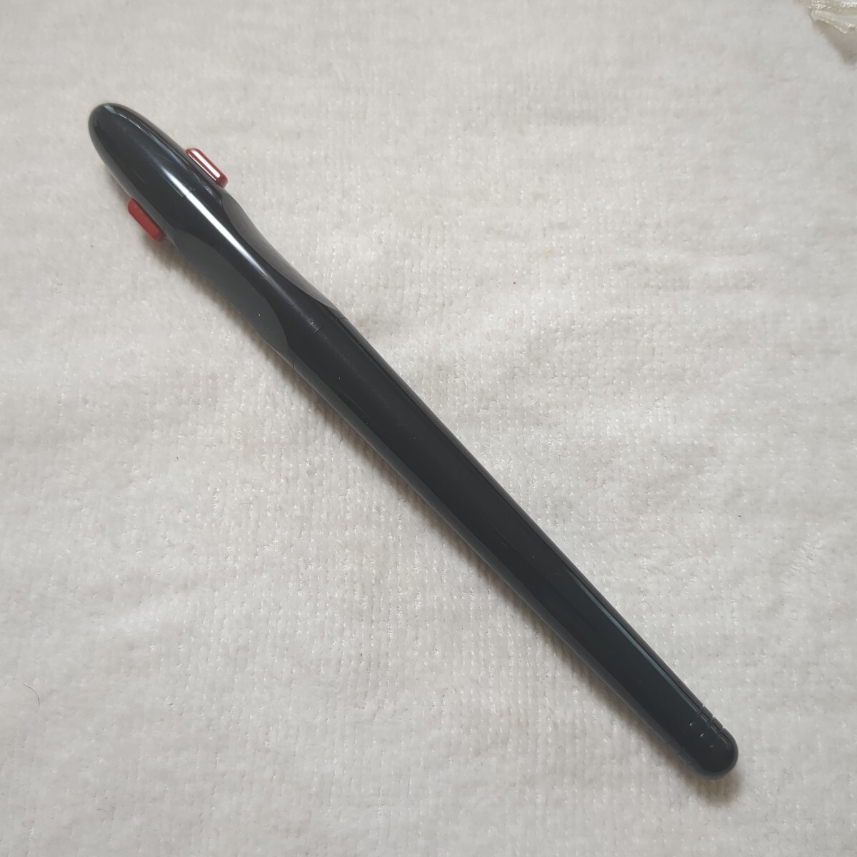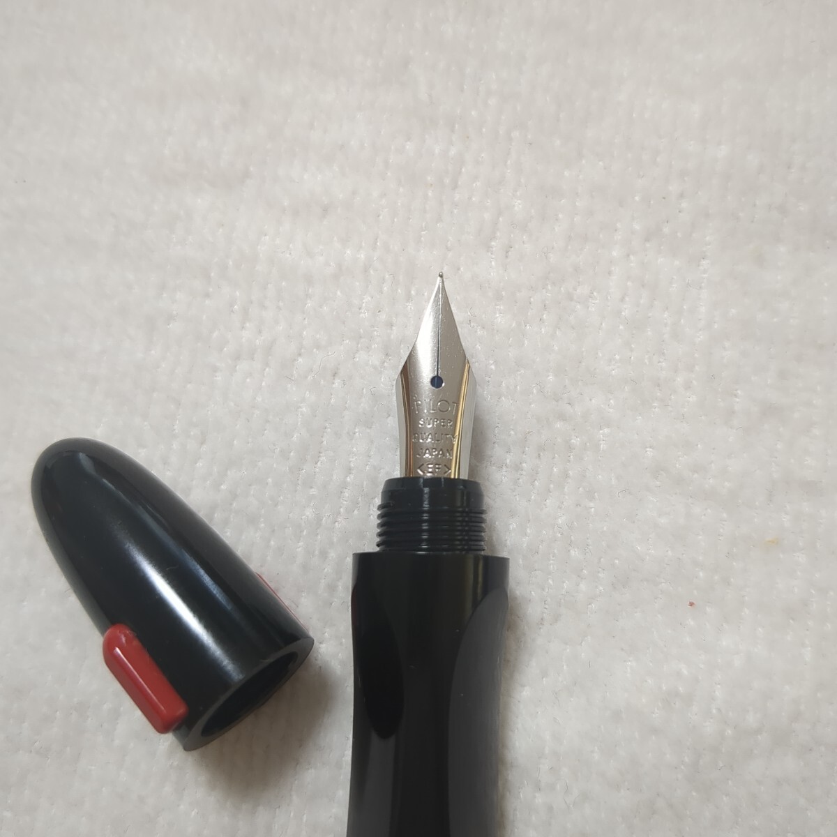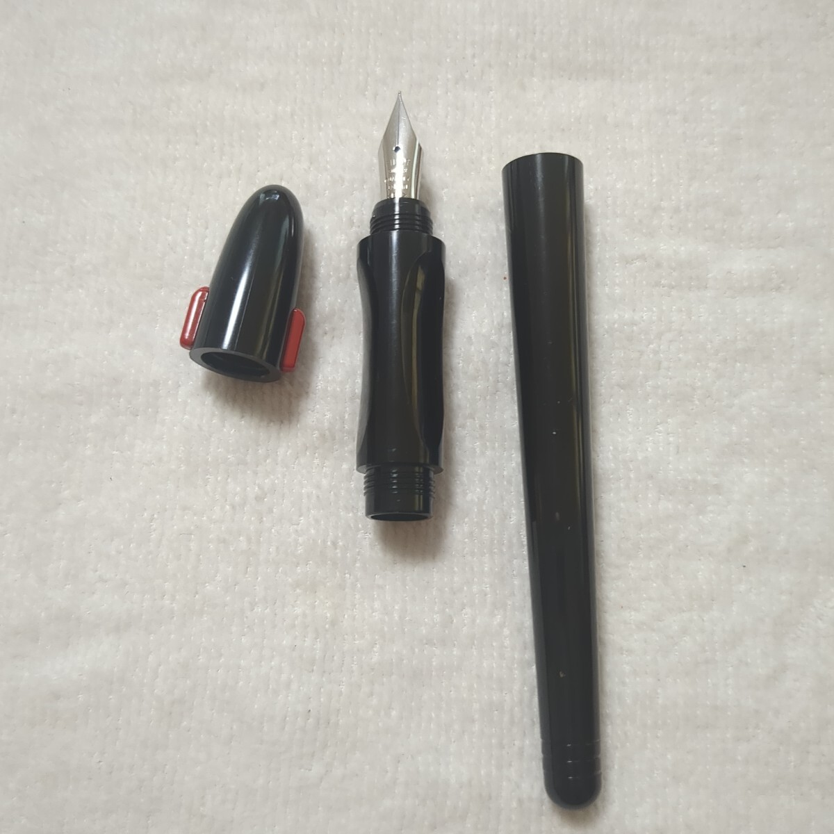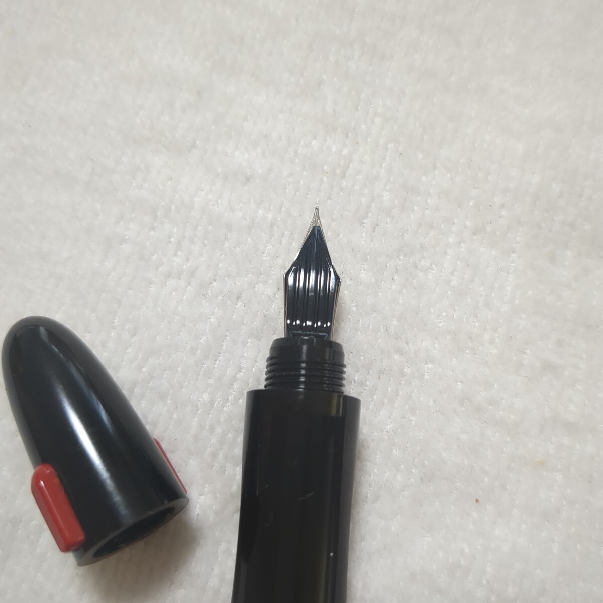 黒い軸でカートリッジ式になります。ペン先は鉄ペンのEF(極細)になります。