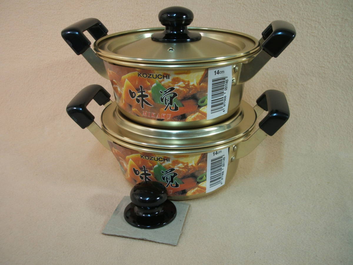 アルミ製 両手鍋 (14cm) 2個  新品 未使用 最小 両手 煮込み鍋 小鍋 ミニ鍋 アルマイト 1人用 個食 KOZUCHI 味覚 味噌汁 温め直し 容量1L
