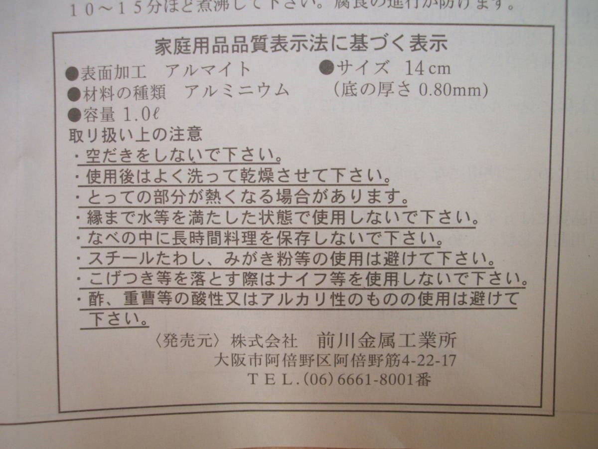 ◆軟らかいアルミ製の 日用品鍋 ですので、製造時の 細かな スリキズ・凹凸・斑点・変色 等はご容赦下さいませ。