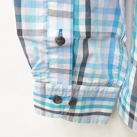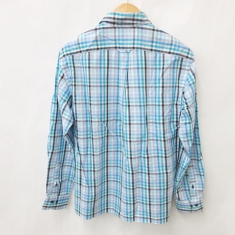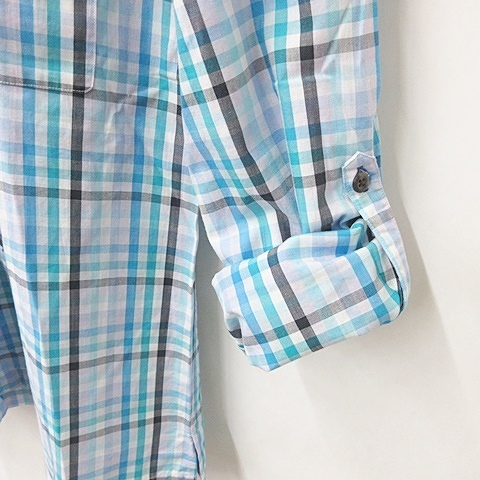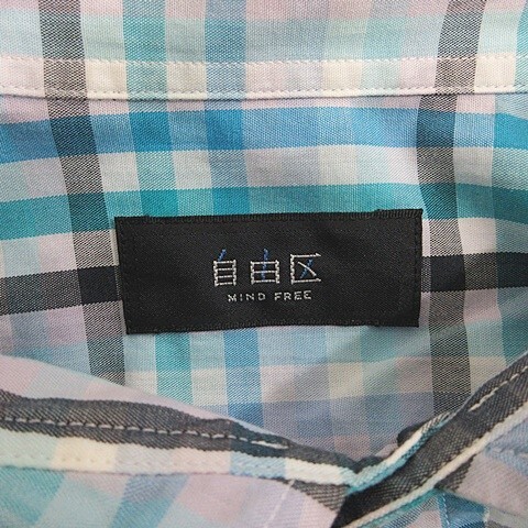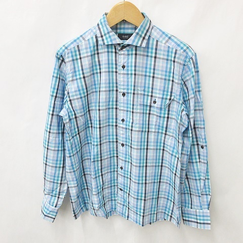 自由区 オンワード樫山 シャツ カジュアル 長袖 ロールアップ チェック 綿 青 白 黒 ブルー ホワイト ブラック LL メンズ