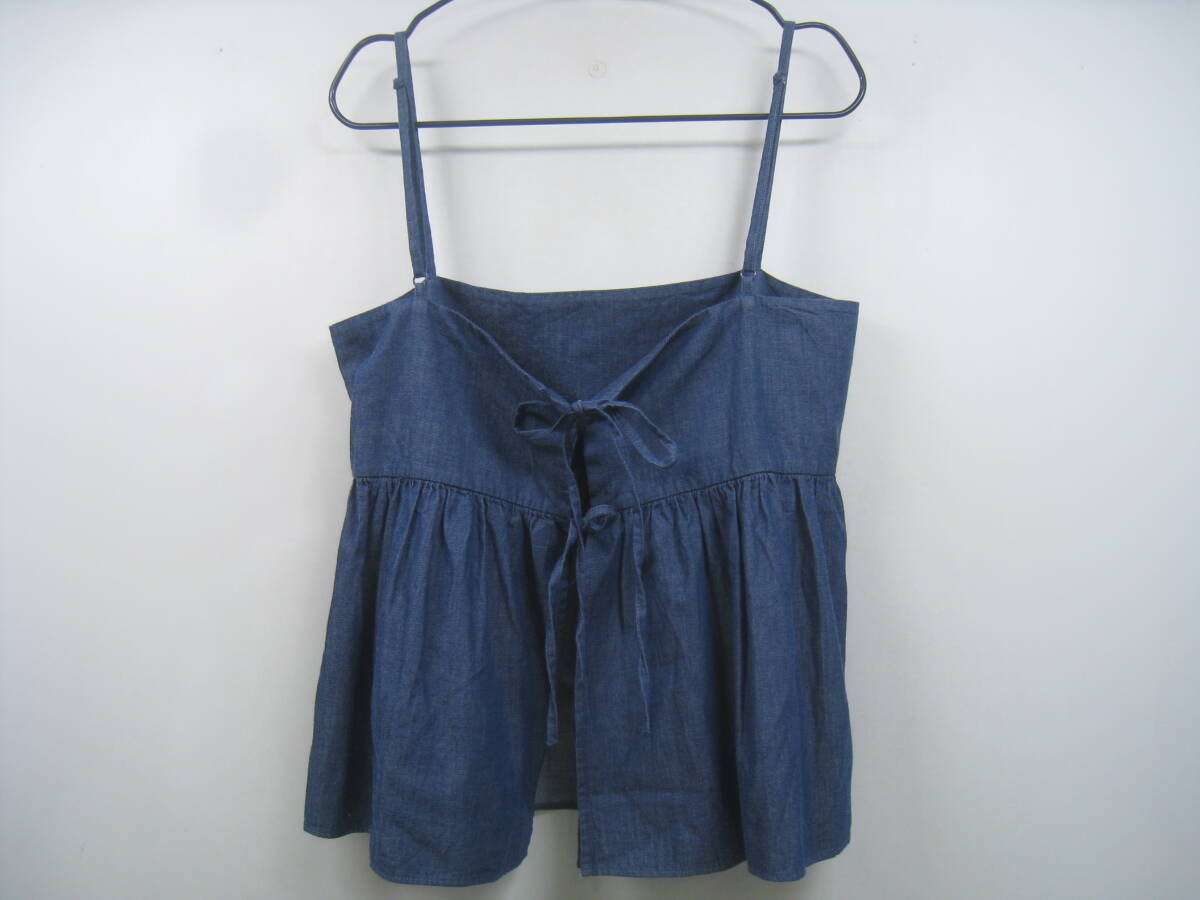 niko and... ニコアンド デニム風キャミソール トップス フリル リボン 青 インディゴブルー サイズF
