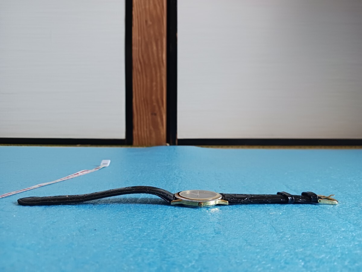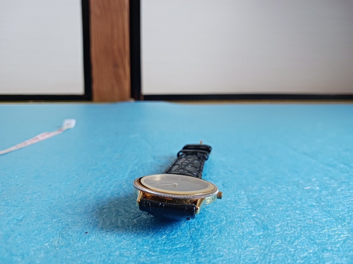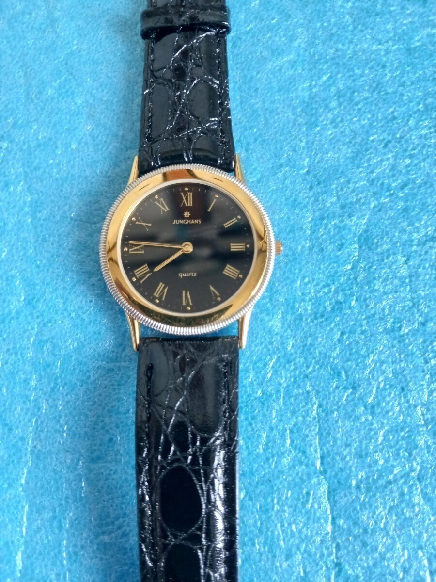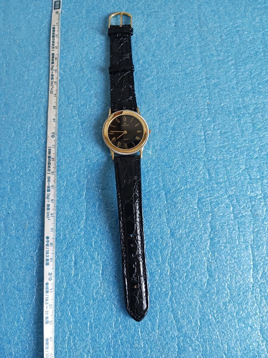 023 ユンスハン 41/5044 メンズ 腕時計 クォーツ ゴールドカラー 革ベルト メタルベゼル JUNGHANS