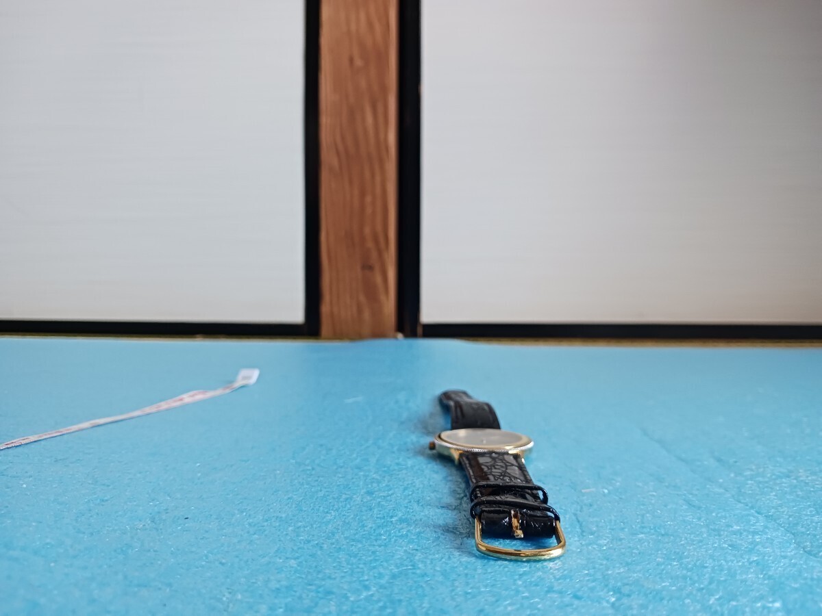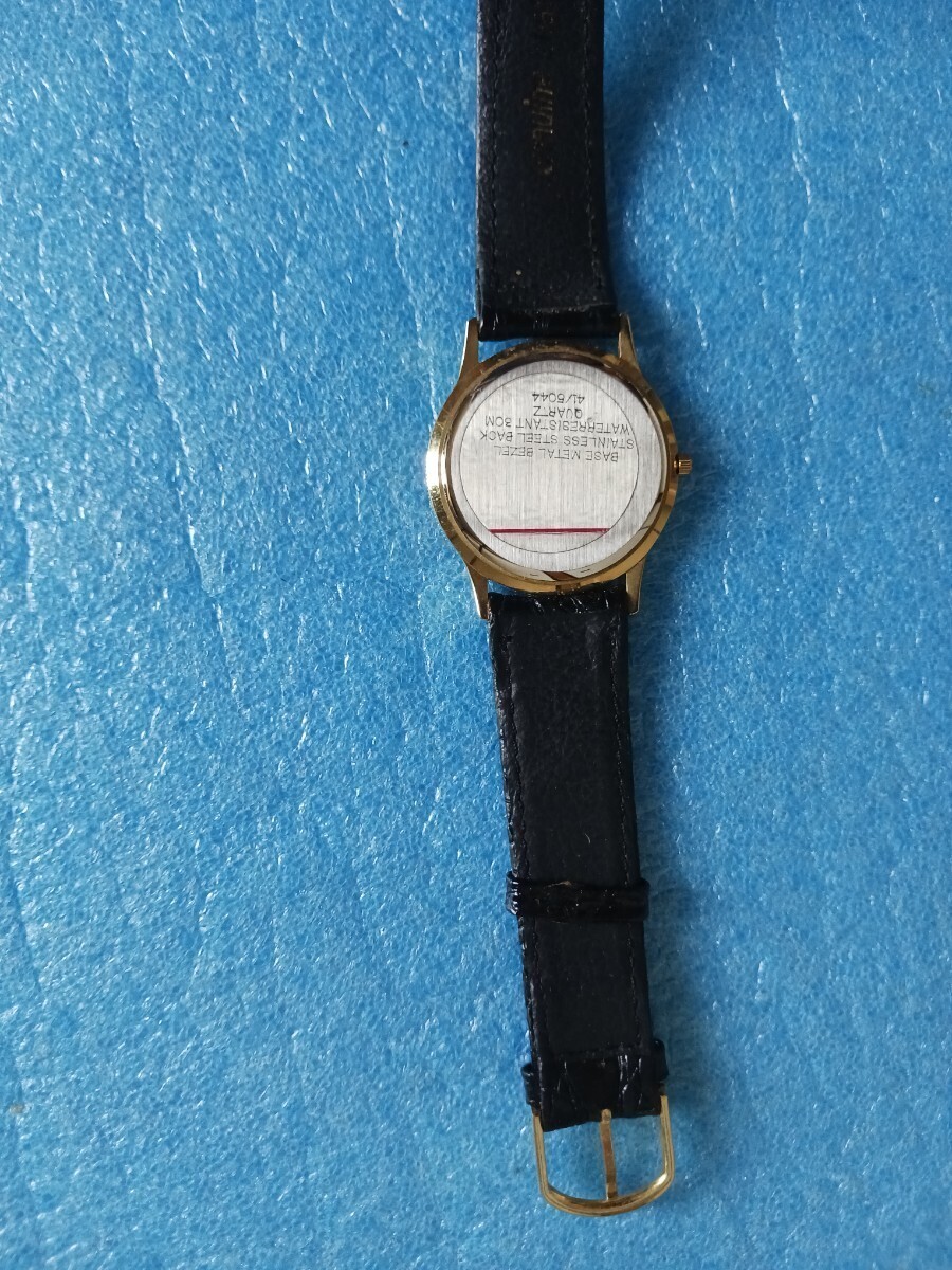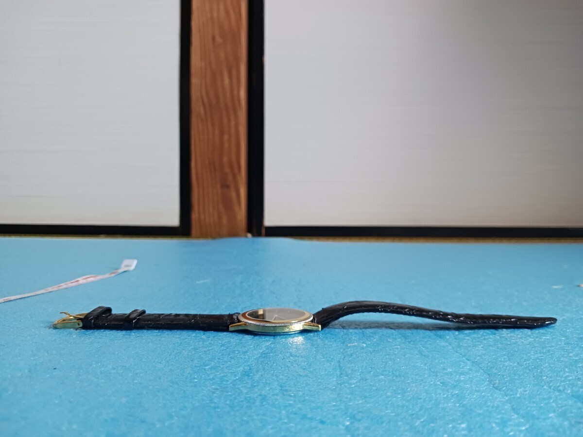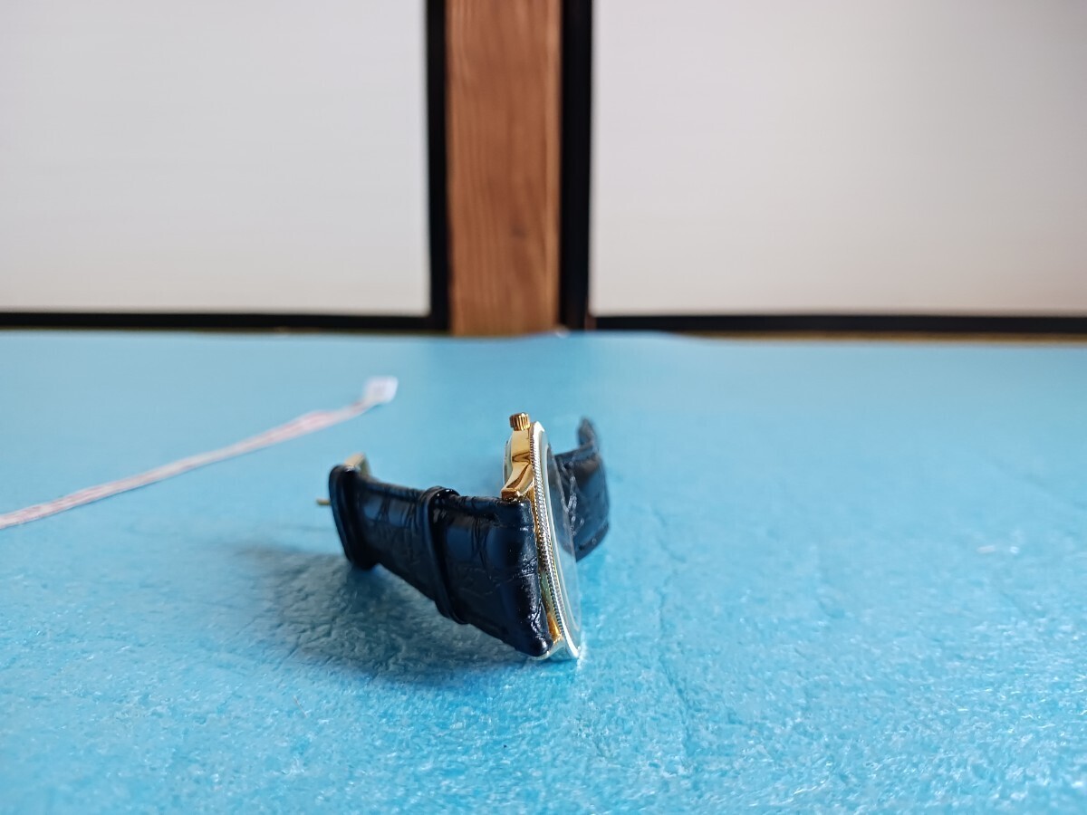 023 ユンスハン 41/5044 メンズ 腕時計 クォーツ ゴールドカラー 革ベルト メタルベゼル JUNGHANS