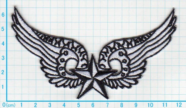 アイロンワッペン/刺繍/アップリケ/ウィングスターエンブレム/白//羽星マーク