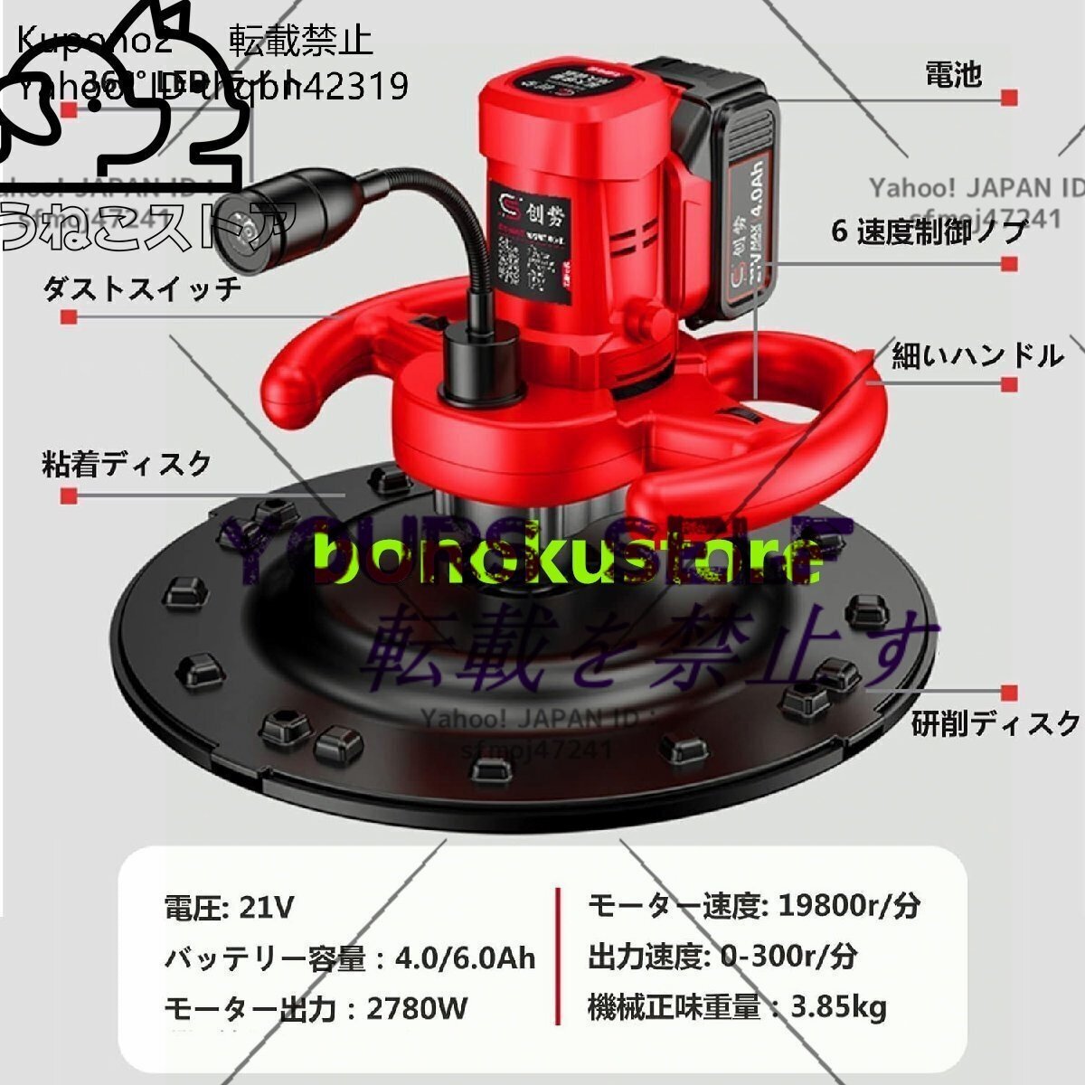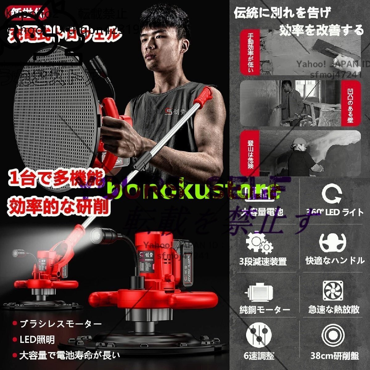 実用便利 電気サンダー セメント コンクリート研磨機 電動トロウェル コードレス ハンドヘルド 6段変速 大直径38cm 延長ロッド*1付き