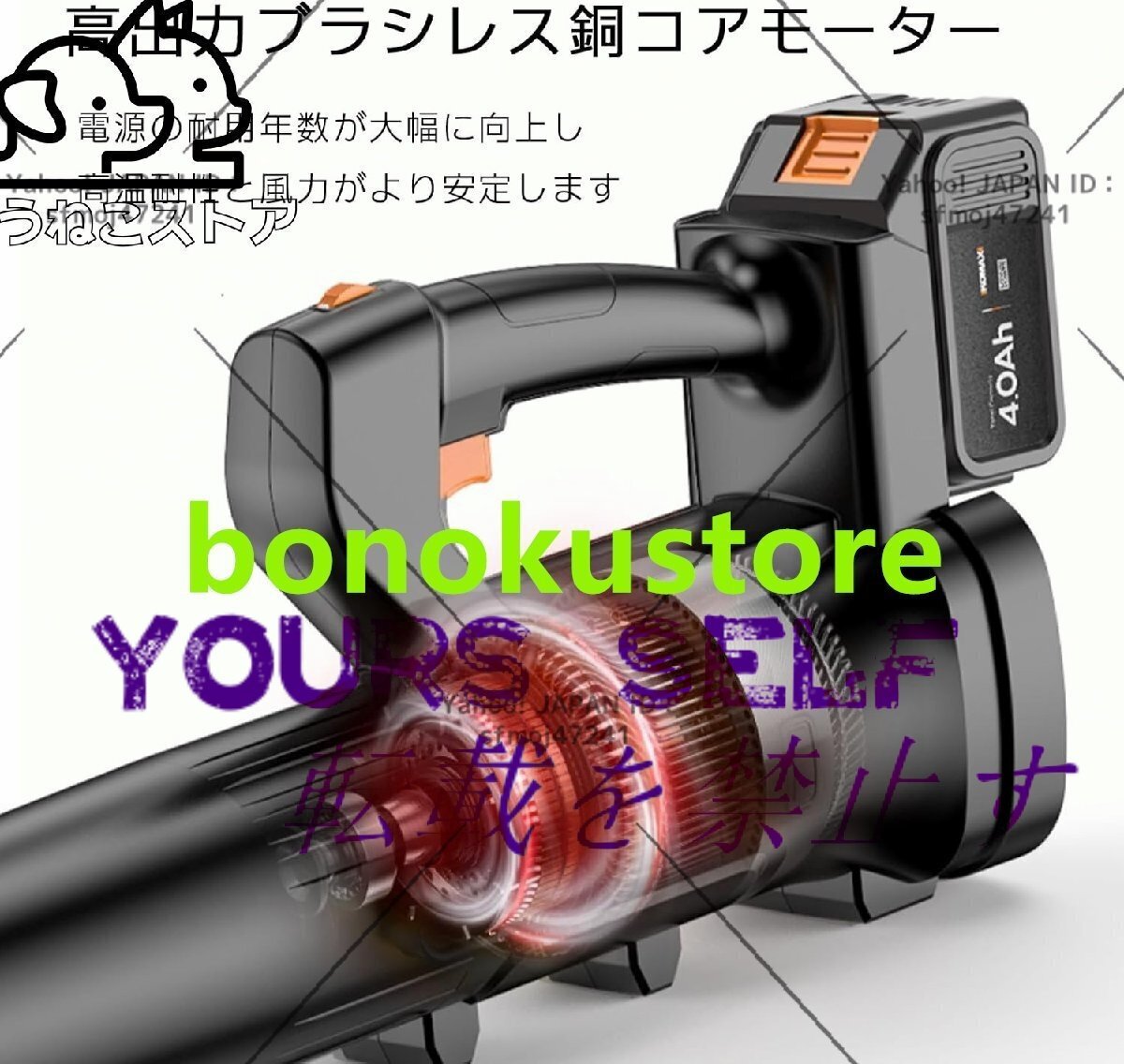 充電式ブロワー 大風量 電動ブロアー 6段階風量 送風機 低振動 軽量 ハイパワー 無段変速 除雪機 コードレス ブロワ 電池2個 4.0ah電池