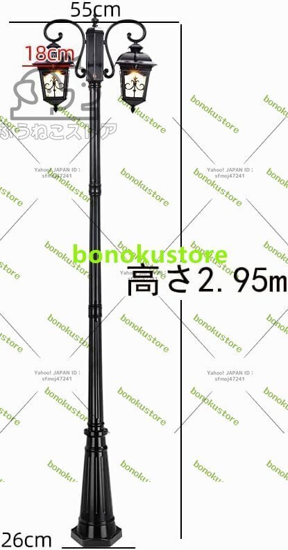 スタイル:欧風カテゴリ:ガーデングラスライト用途:屋外照明ランプボディ材質:アルミニウムランプシェードマテリアル:ガラス光源:LEDランプ電圧:110-240 Vこの屋外照明街灯は公園、道路、庭園などに適しており、金属表面に防錆防水の塗装面が付着しており、電柱をより強固に耐久性があり、漏電の心配もない。