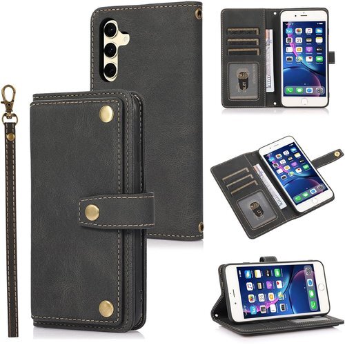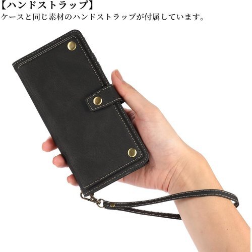 ストラップ 2本付き 適用 Galaxy A55 5G ーケース ストラップ付き カードケース レトロ ブラック 1268