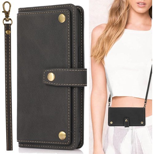 ストラップ 2本付き 適用 Galaxy A55 5G ケース 手帳型 A55 Galaxy SC-53E SCG27 ケース GalaxyA55 スマホケース SC 53E ケース ギャラクシー A55 手帳 case Heofuixt カード収納 スタンド ストラップホール 肩掛け ショート ストラップ 斜めがけ カード入れ ショルダーケース ストラップ付き カードケース レトロ ブラック 1268