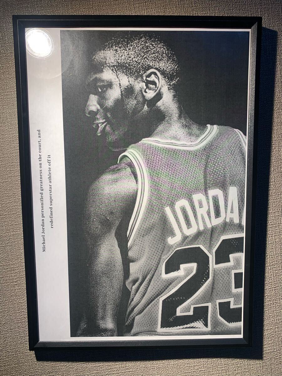マイケルジョーダンのポップアートです。サイズはA4で額付きになります。当時のものではありません。画質はアップにてご確認いただきますようよろしくお願い致します。