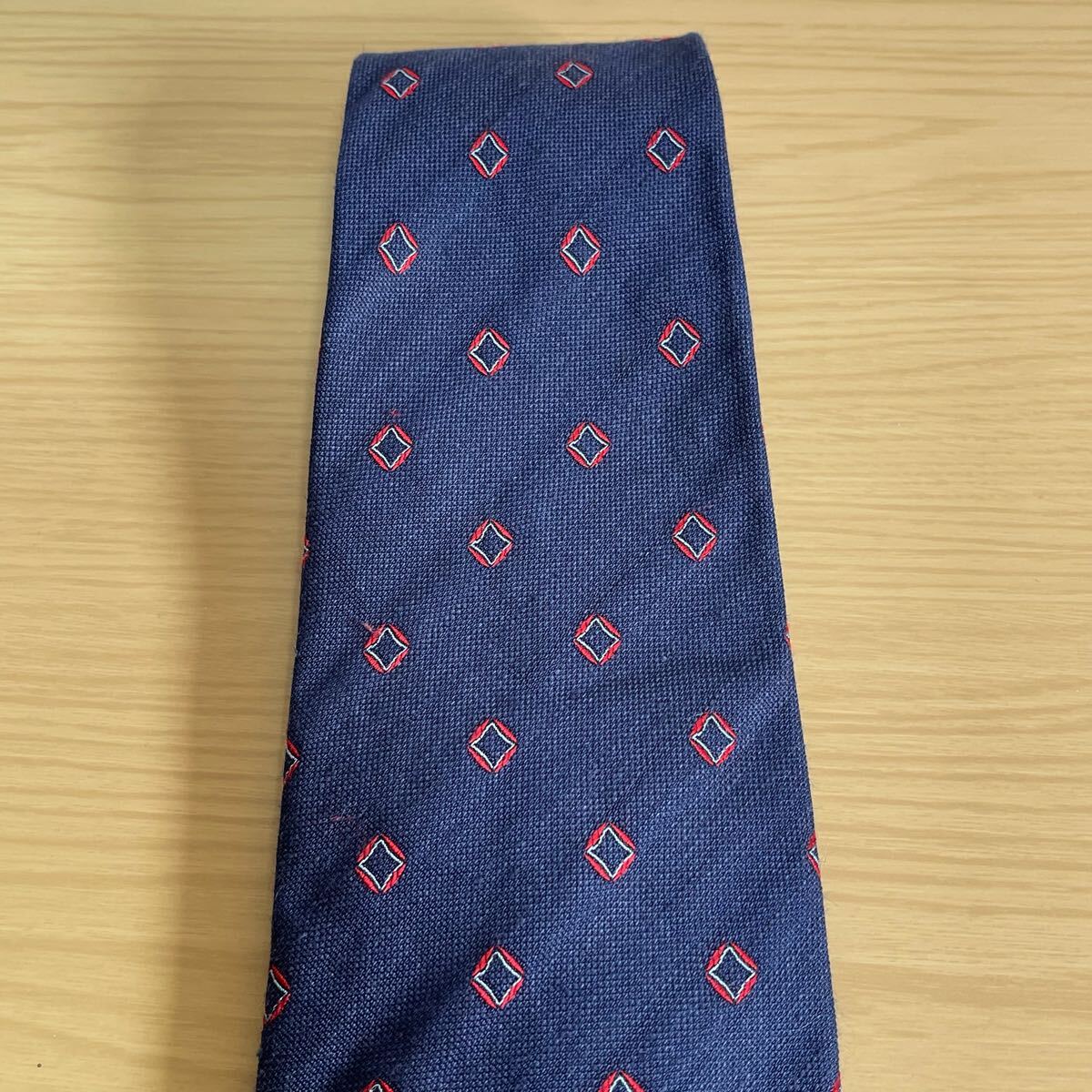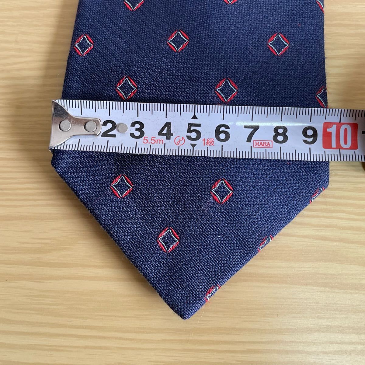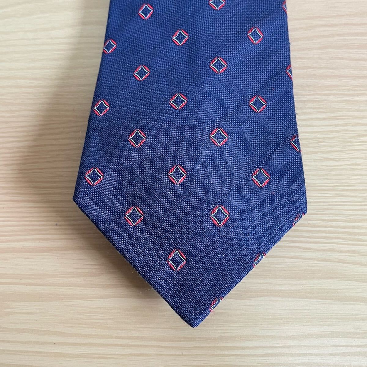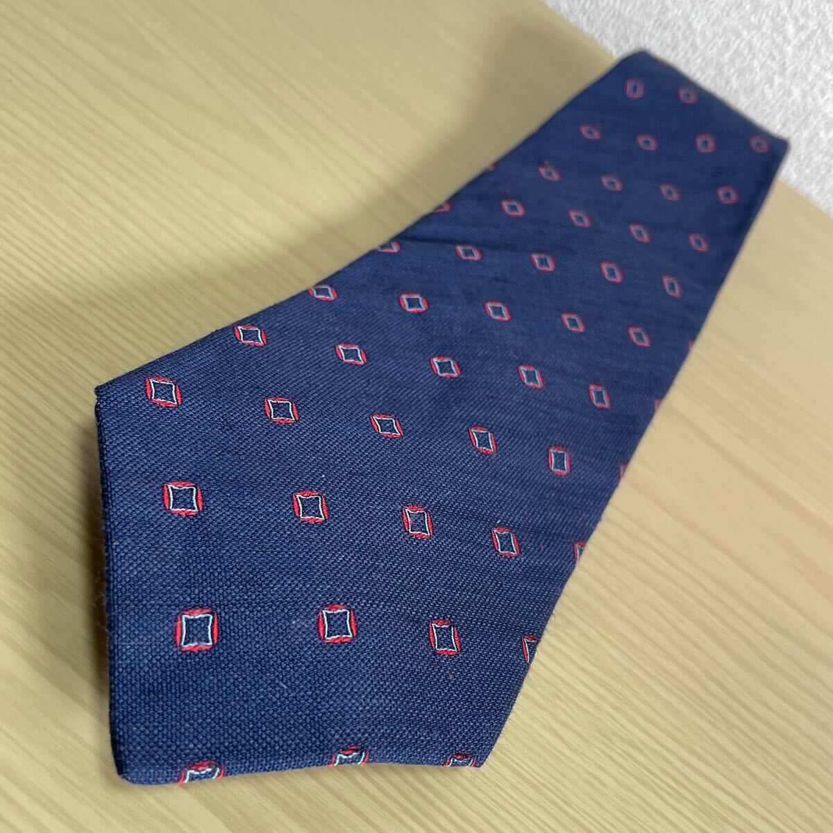 ダーク紺色赤枠ミクロスクエアドットデザインネクタイ