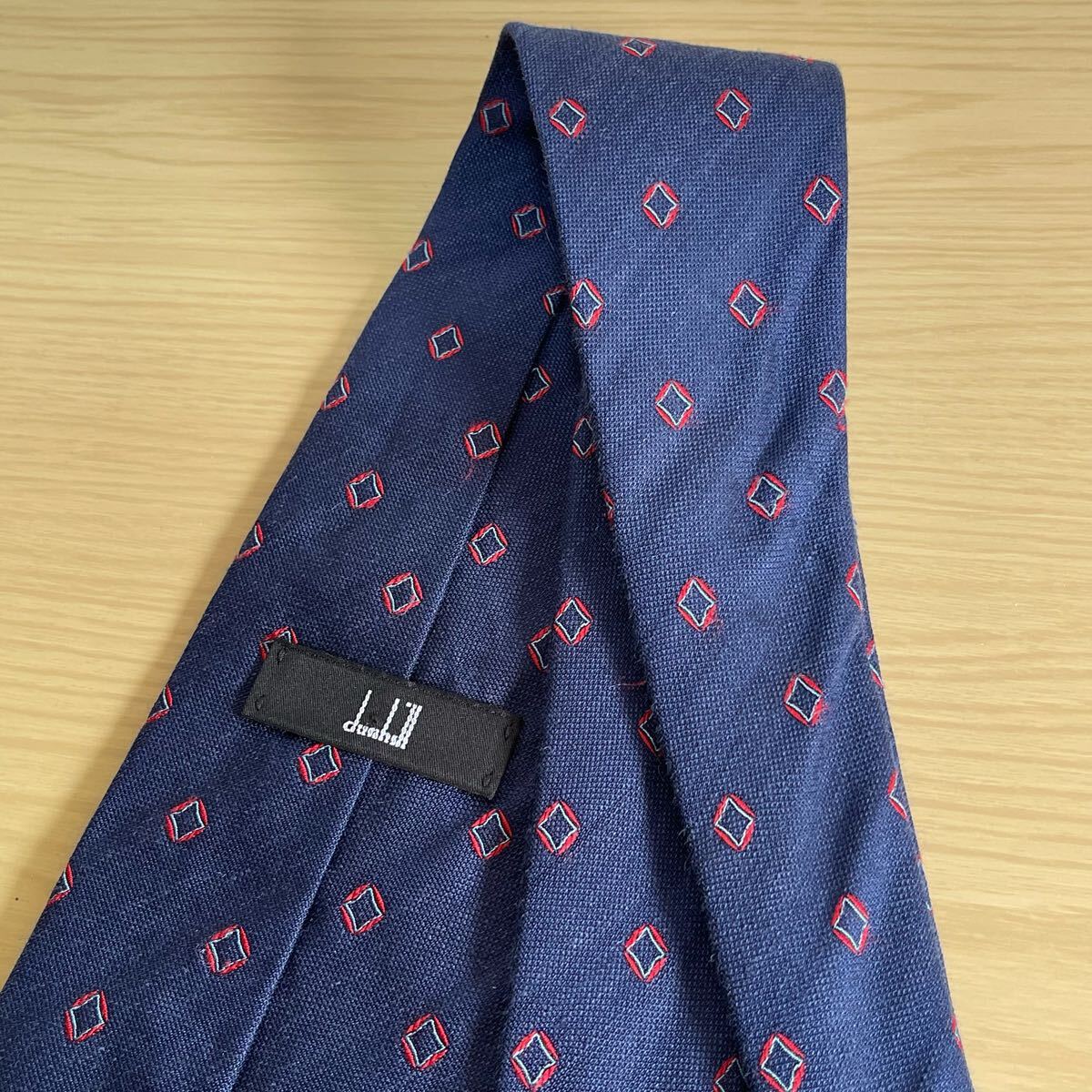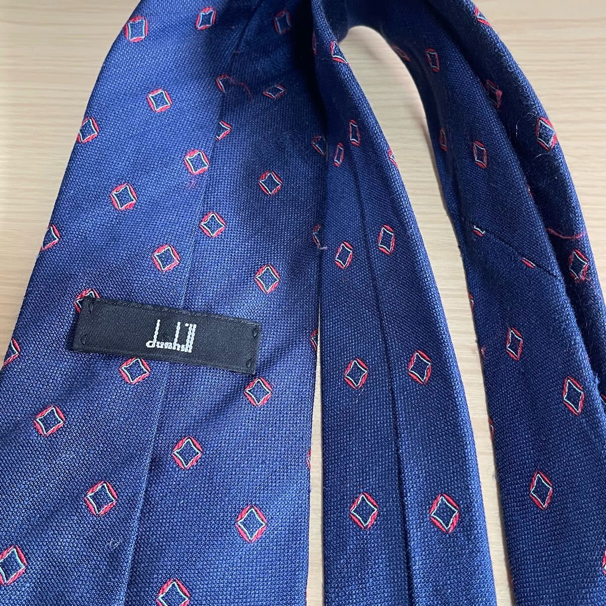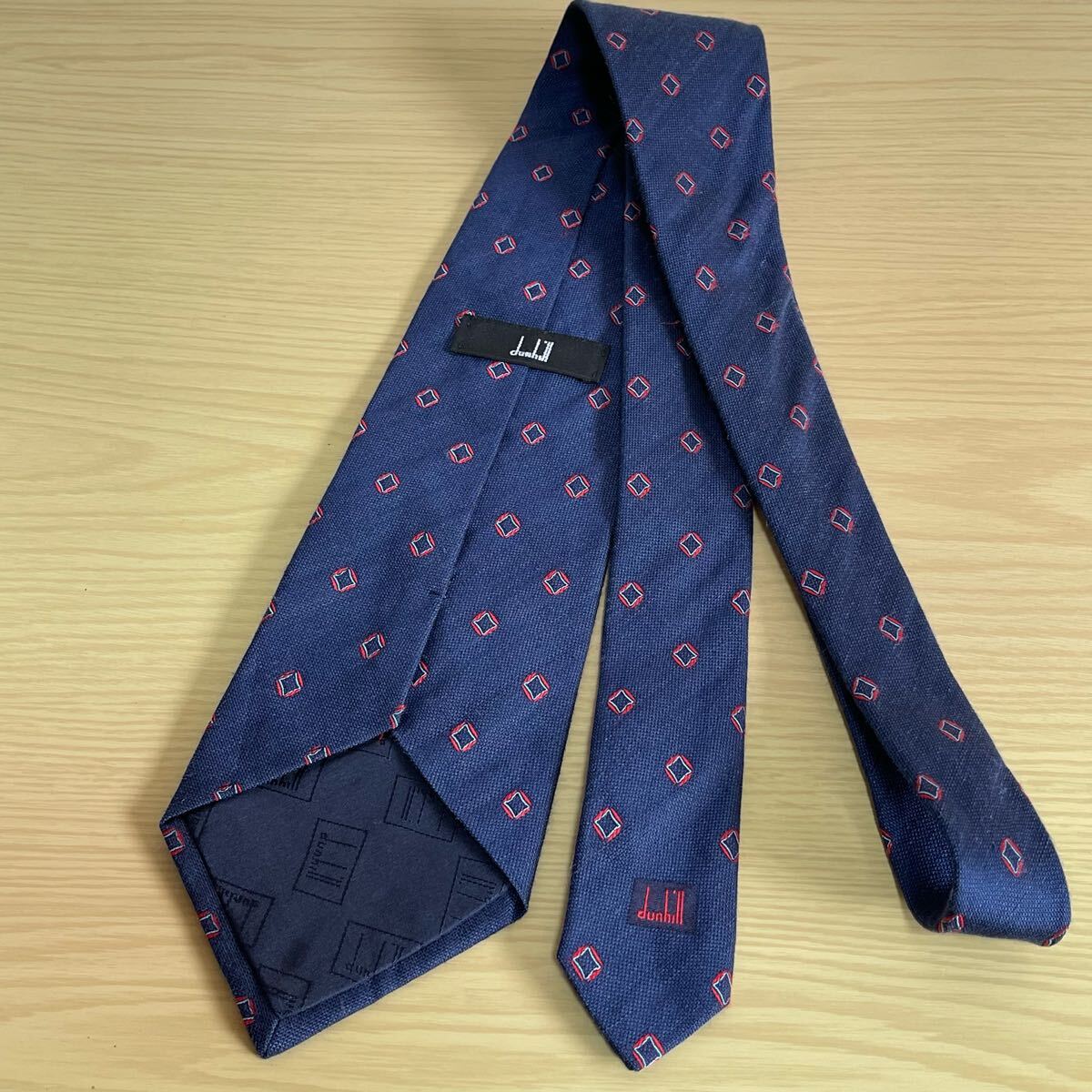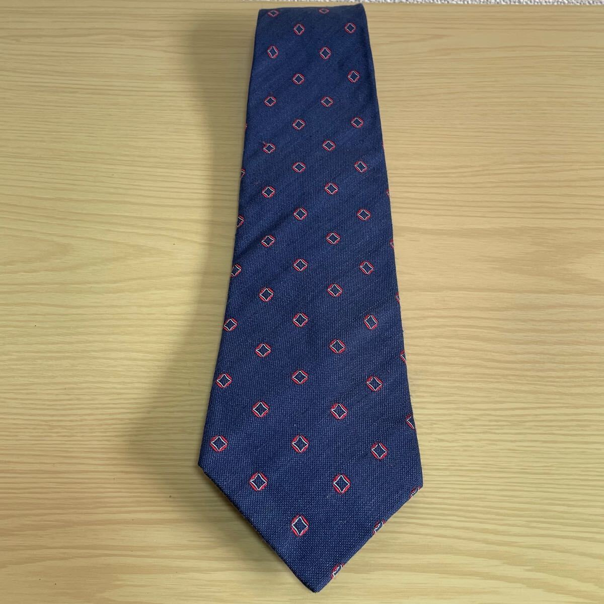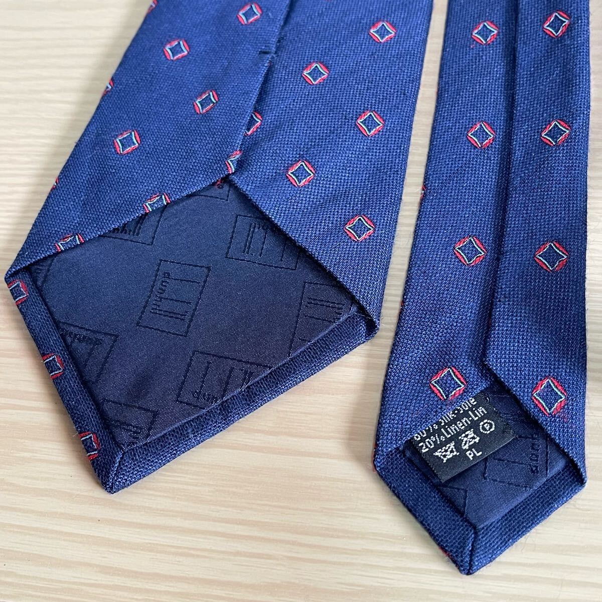 ダーク紺色赤枠ミクロスクエアドットデザインネクタイ