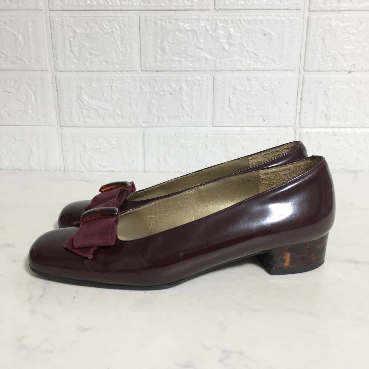 no33333 YSL イヴサンローラン エナメル リボン パンプス ヒール 35 1/2