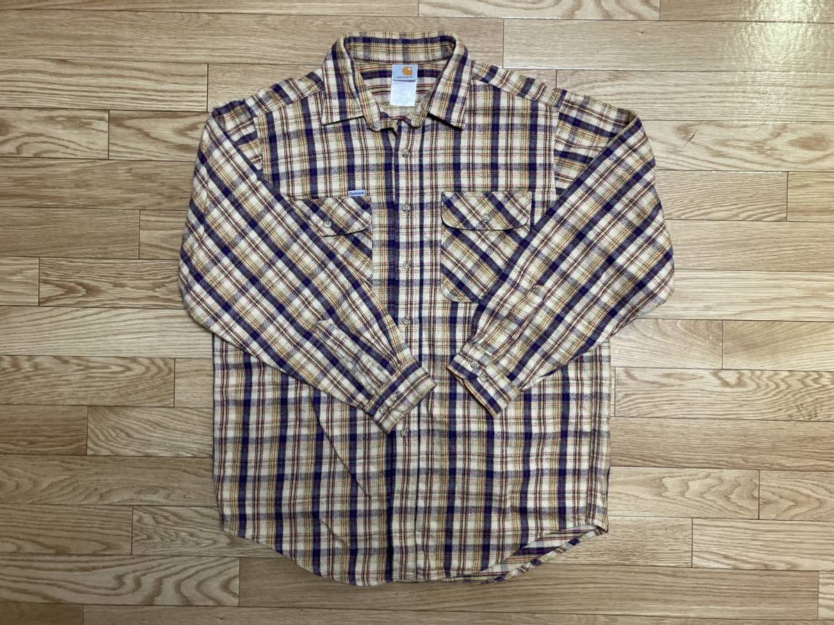 90年代のカーハートのアメリカ製ヘビーウエイト・フランネル・シャツ、サイズはlargeです。