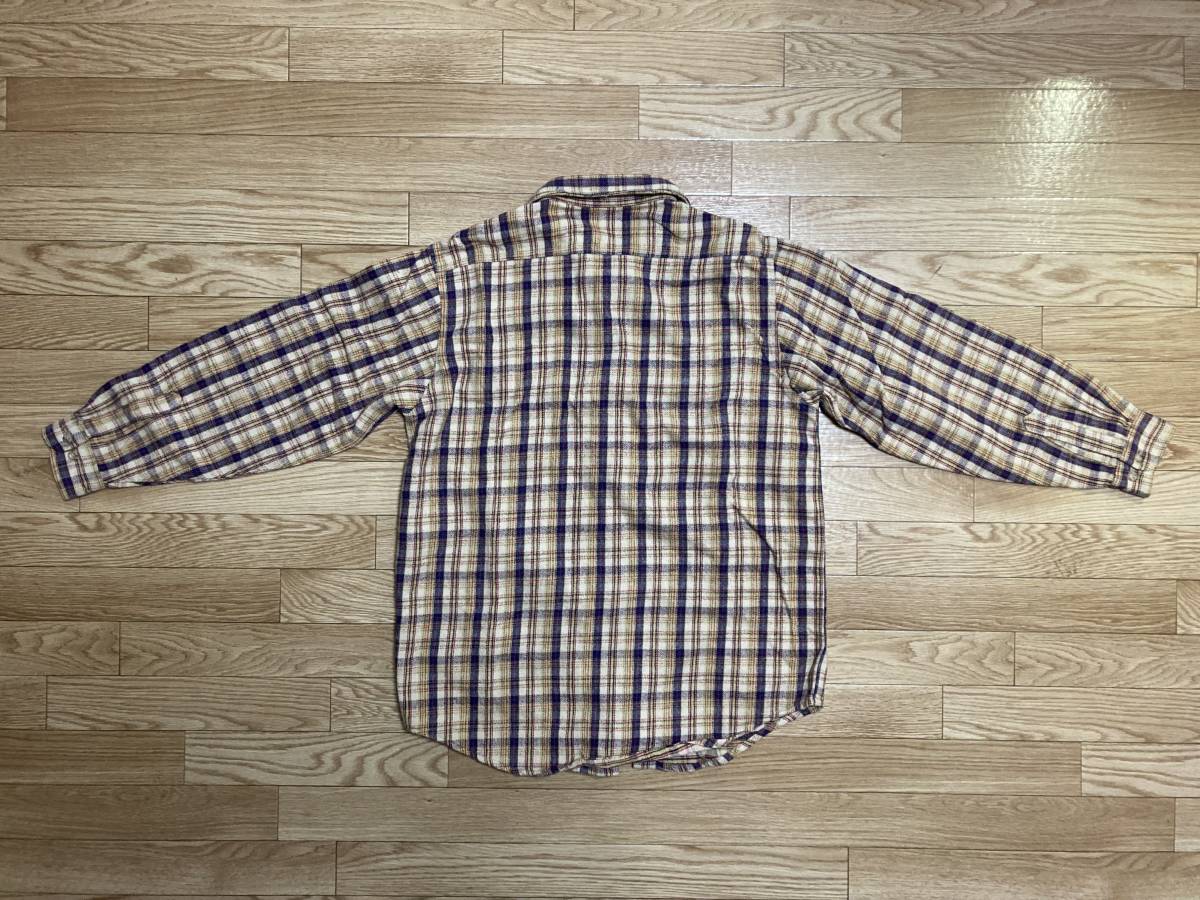 生地はコットン100%のヘビーウエイト・フランネル、カラーはベージュ系チェックです。