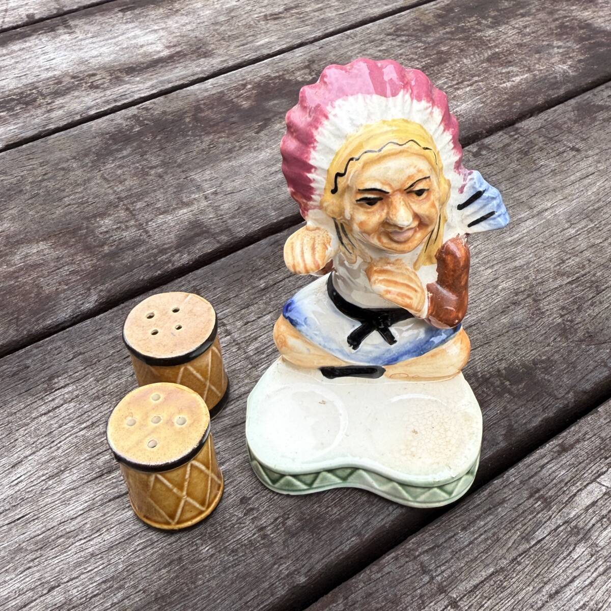 インディアンがモチーフになったソルト&ペッパーで、太鼓がシェイカーになっています。
