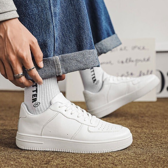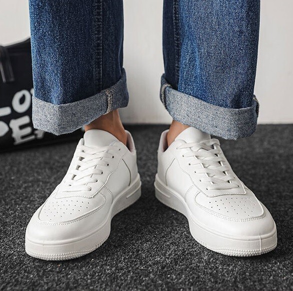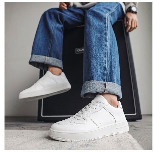 靴【 s98 】24.5cm 白 メンズ ローカット PUレザー スニーカー シューズ スポーツ 中学校 中学生 中学靴 白靴 無地 通学 白スニーカー