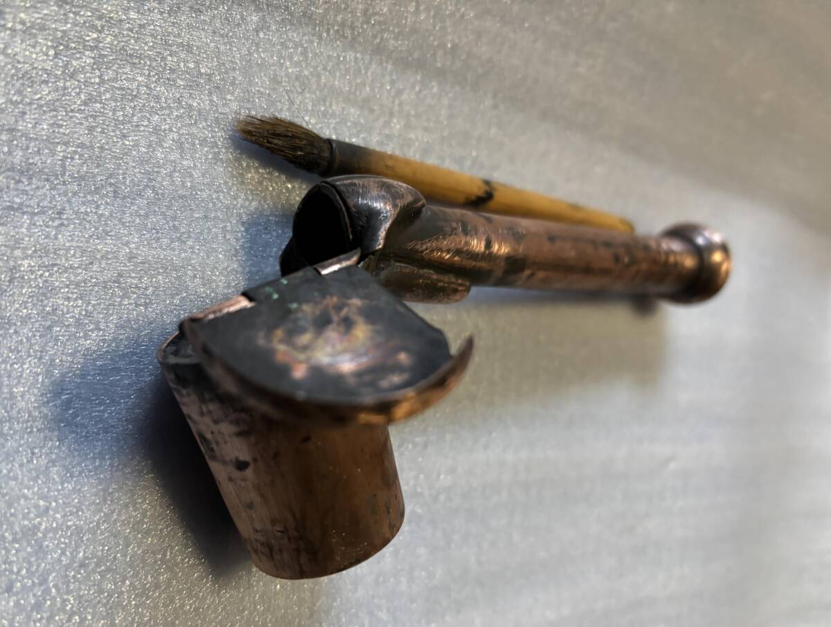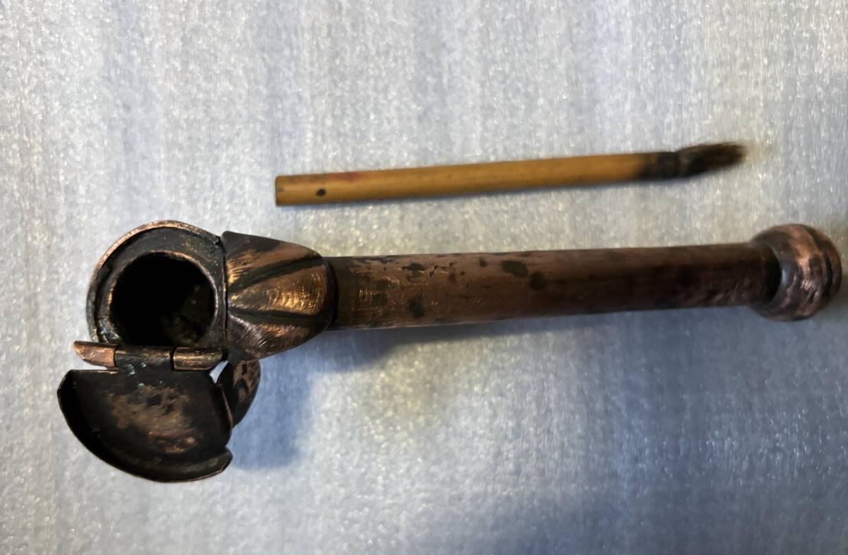 江戸・明治期 銅製天立 携帯用小型墨壺 レトロ品