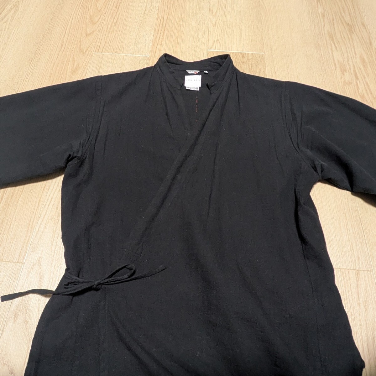 伊勢木綿 麻混 手柄作務衣 濡羽色