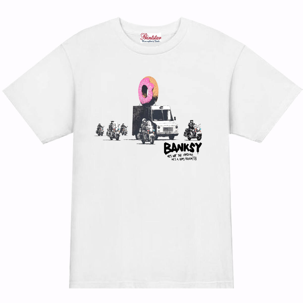 【バンクシー白S】5ozドーナッツ車Tシャツ面白いおもしろうけるネタプレゼント送料無料・新品