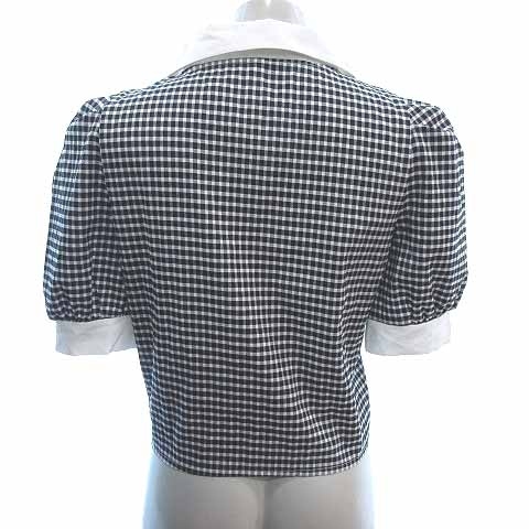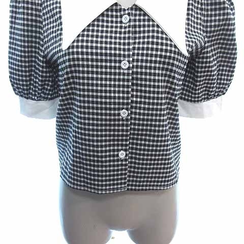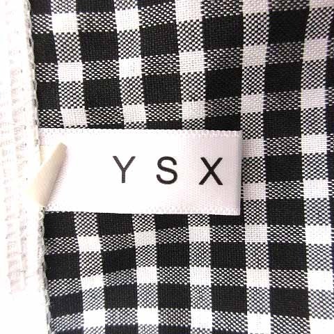 YSX シャツ ブラウス ギンガムチェック 五分袖 S 黒 ブラック 白 ホワイト /YK レディース