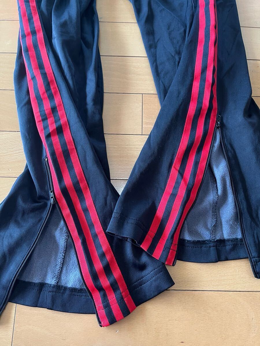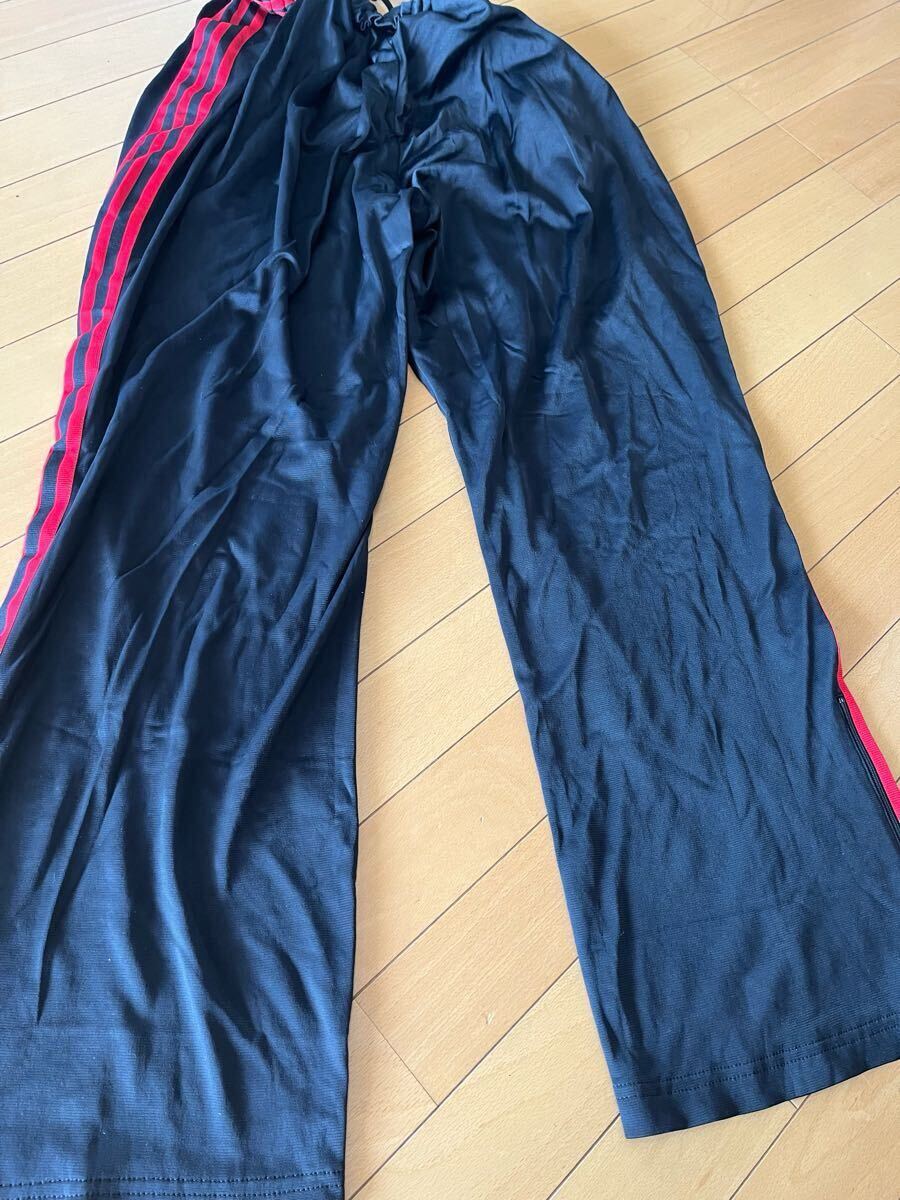 実寸サイズは素人採寸ではございますが 平置き状態で測りまして ウエスト部「ゴムが効いておりますので1㎝前後の誤差はございます」50㎝ 股下79.6㎝ 全長111.5㎝ 太もも幅「股下すぐ」40㎝ スソ幅28㎝
