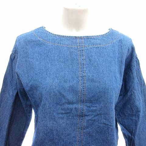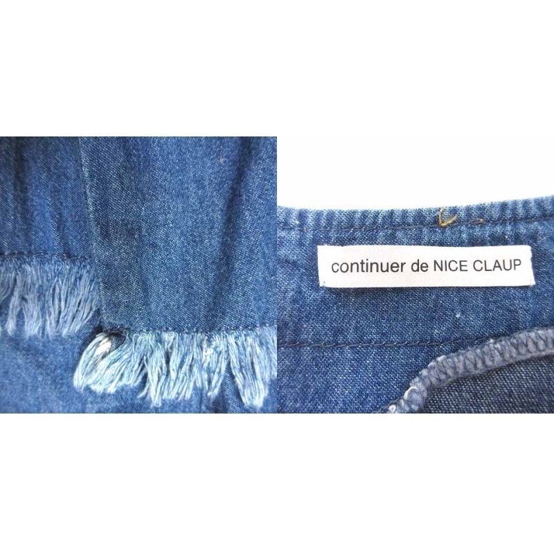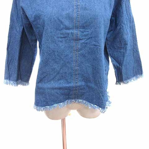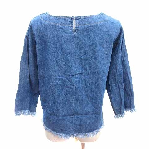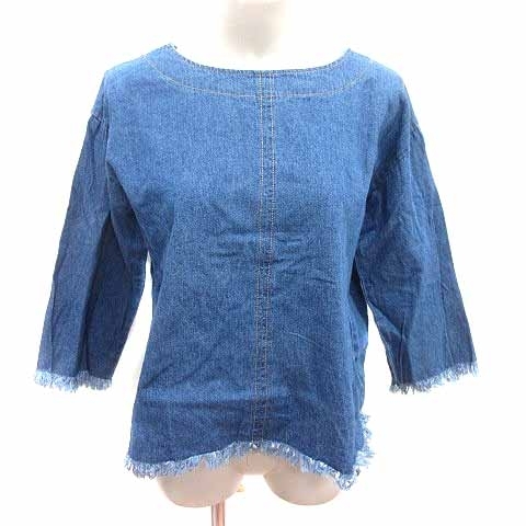 ナイスクラップ NICE CLAUP continuer de NICE CLAUP カットソー ボートネック デニム フリンジ 七分袖 F 青 ブルー /YK レディース
